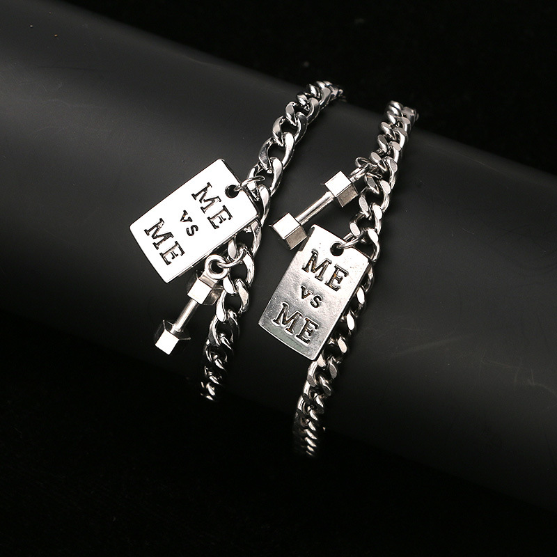 Korean Style Small Dumbbell Men's Bracelet Trendy Simple Personality Bracelet Hip Hop Bracelet Student Couple Bracelet Internet Celebrity Accessories