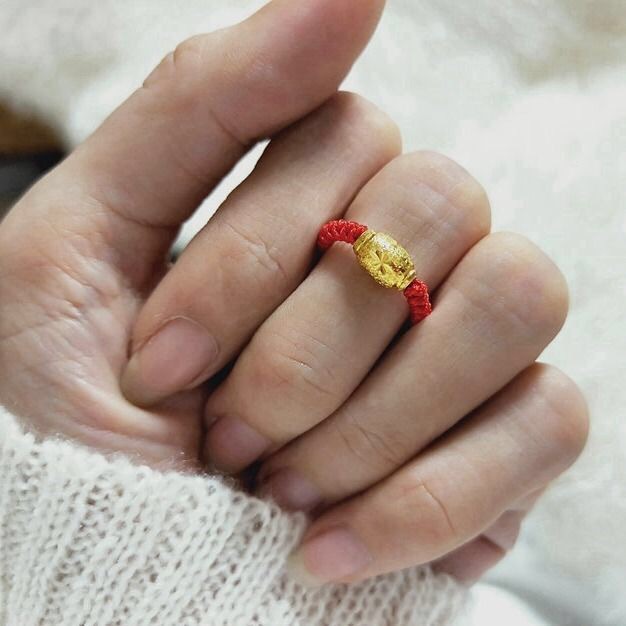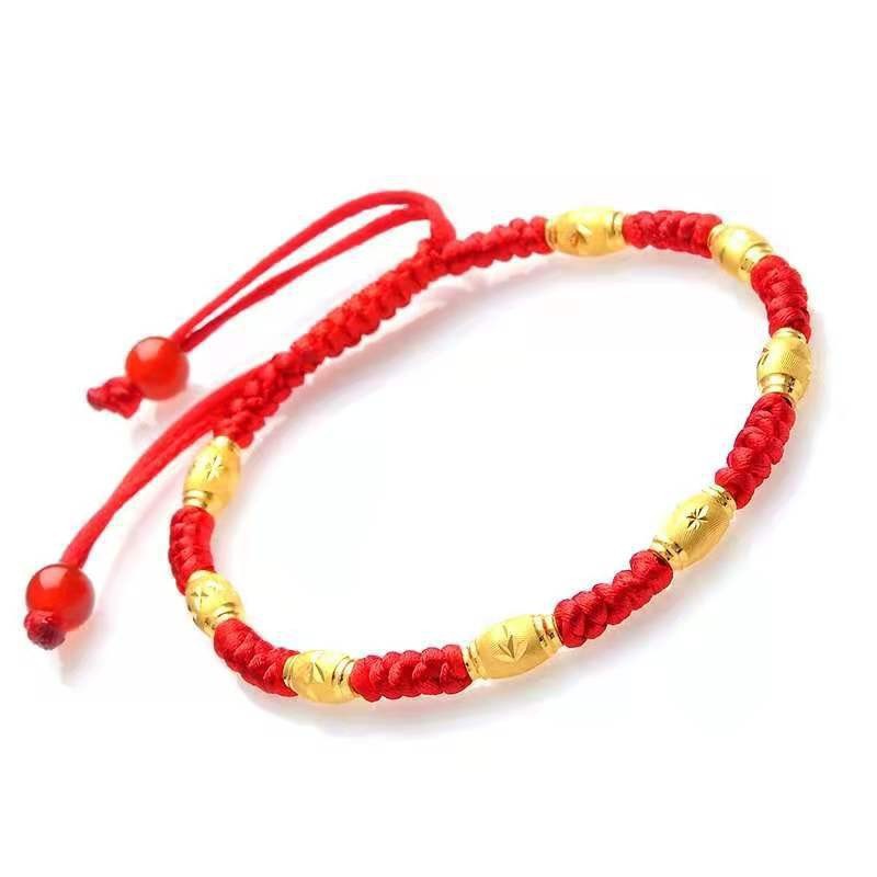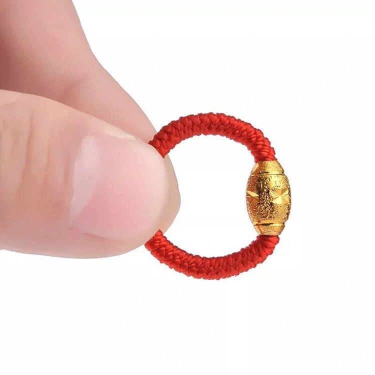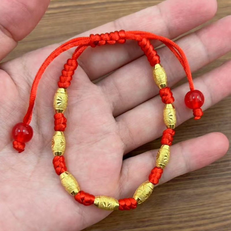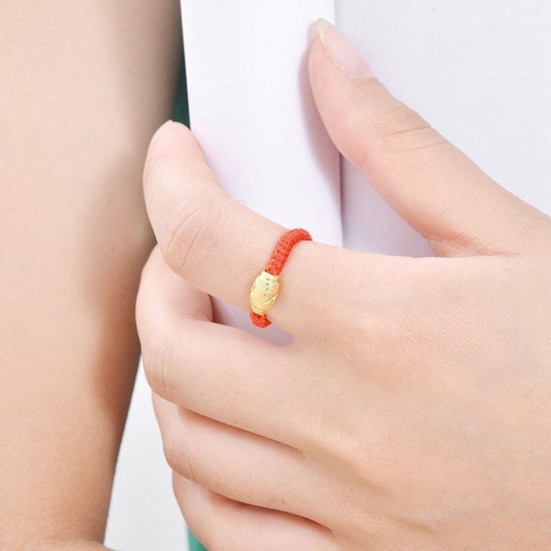 2025 New Red Rope Lucky Transfer Bead Zodiac Year Hand-Woven Ring Simple Elegant Small Gold Bean Ring