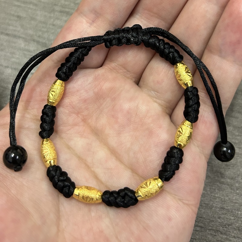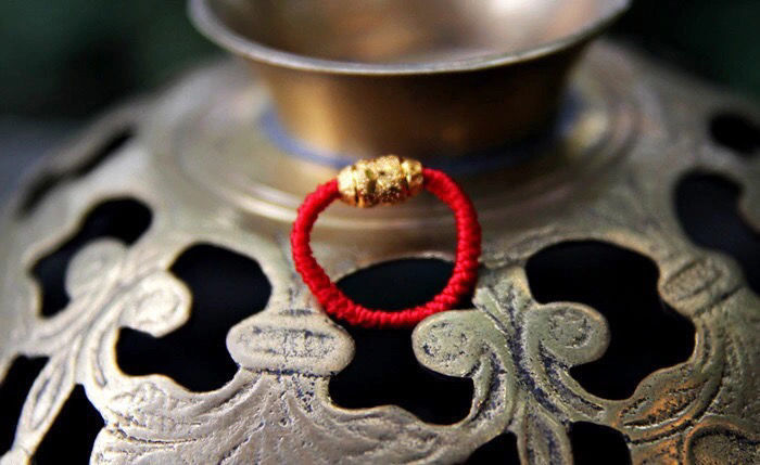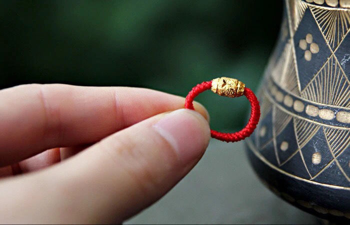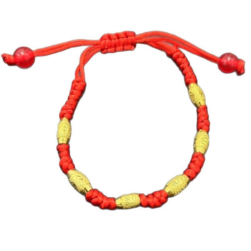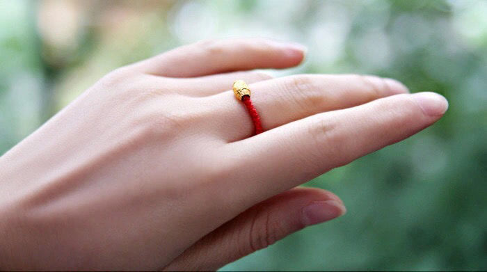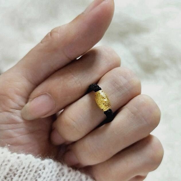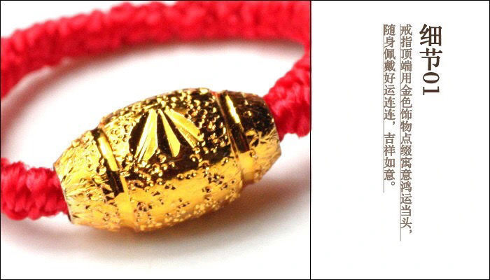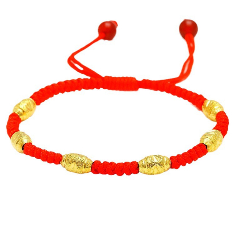 2025 New Red Rope Lucky Transfer Bead Zodiac Year Hand-Woven Ring Simple Elegant Small Gold Bean Ring