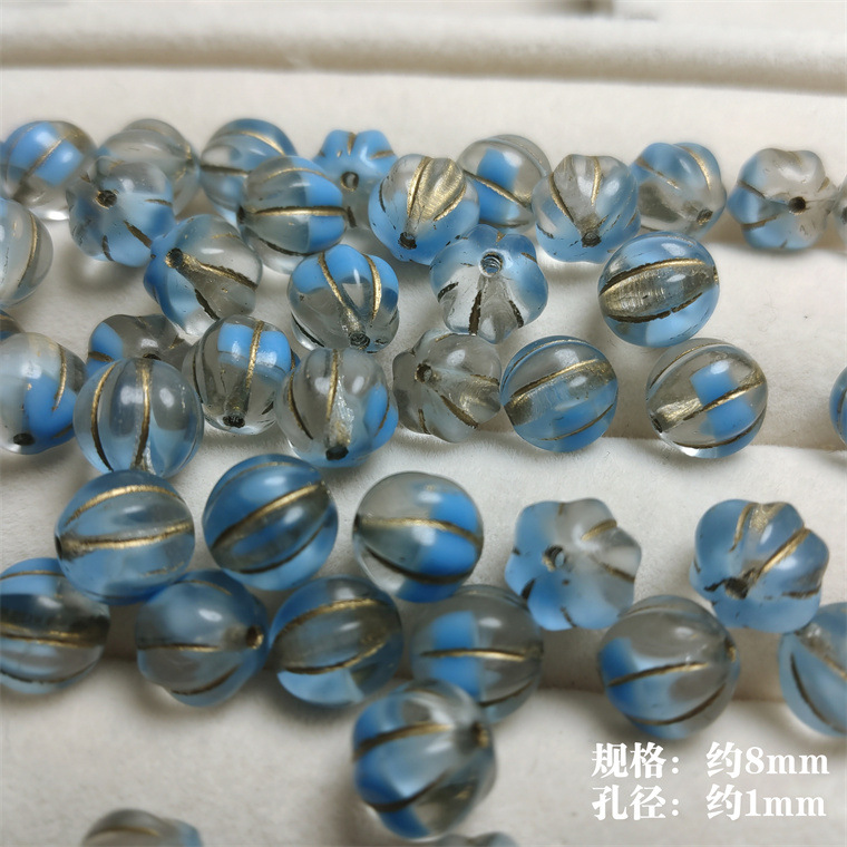 Color: A169_#One sky blue gold-painted pumpkin bead