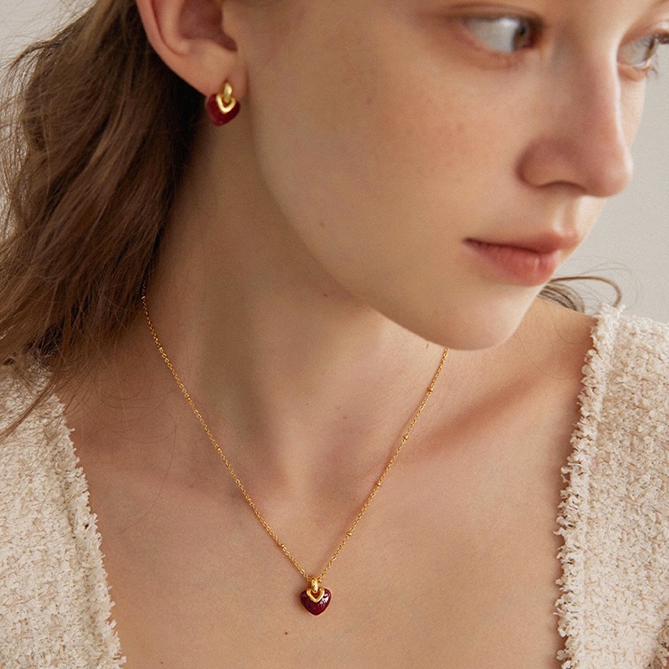 Love Necklace Retro Female Niche Design Sweet High-end French Simple Collarbone Cute Heart Necklace Women