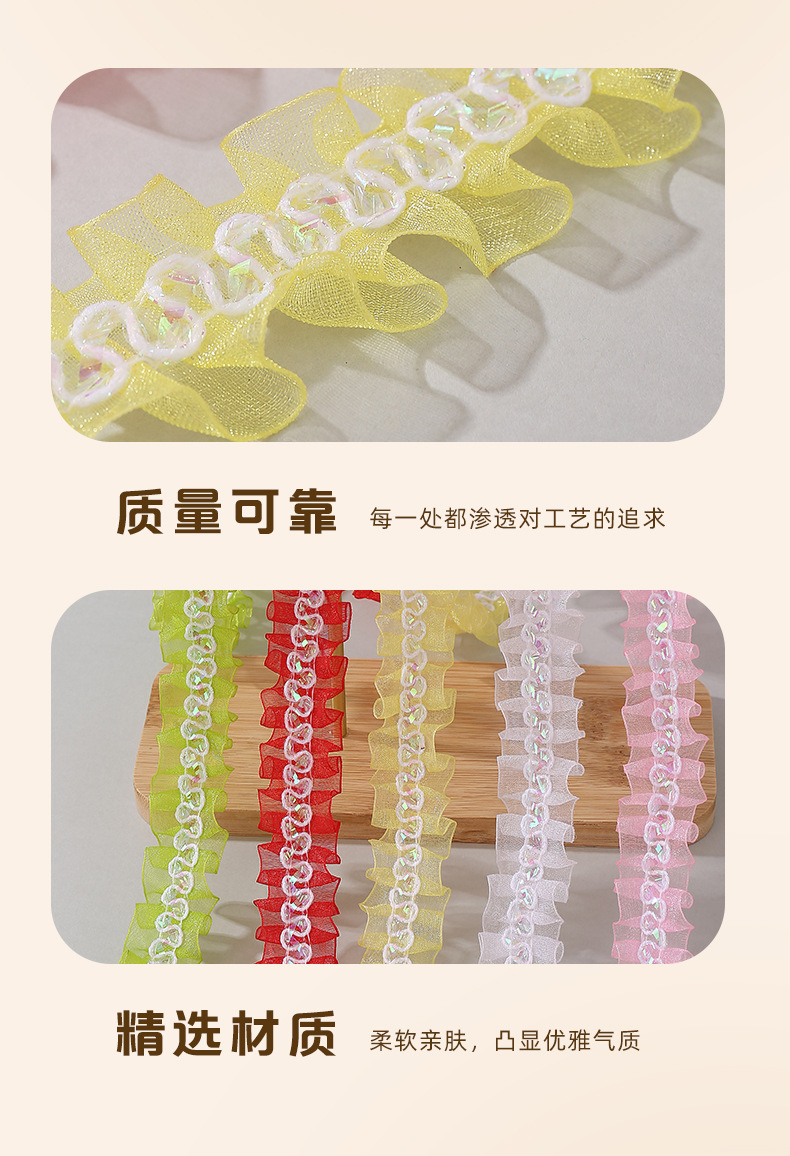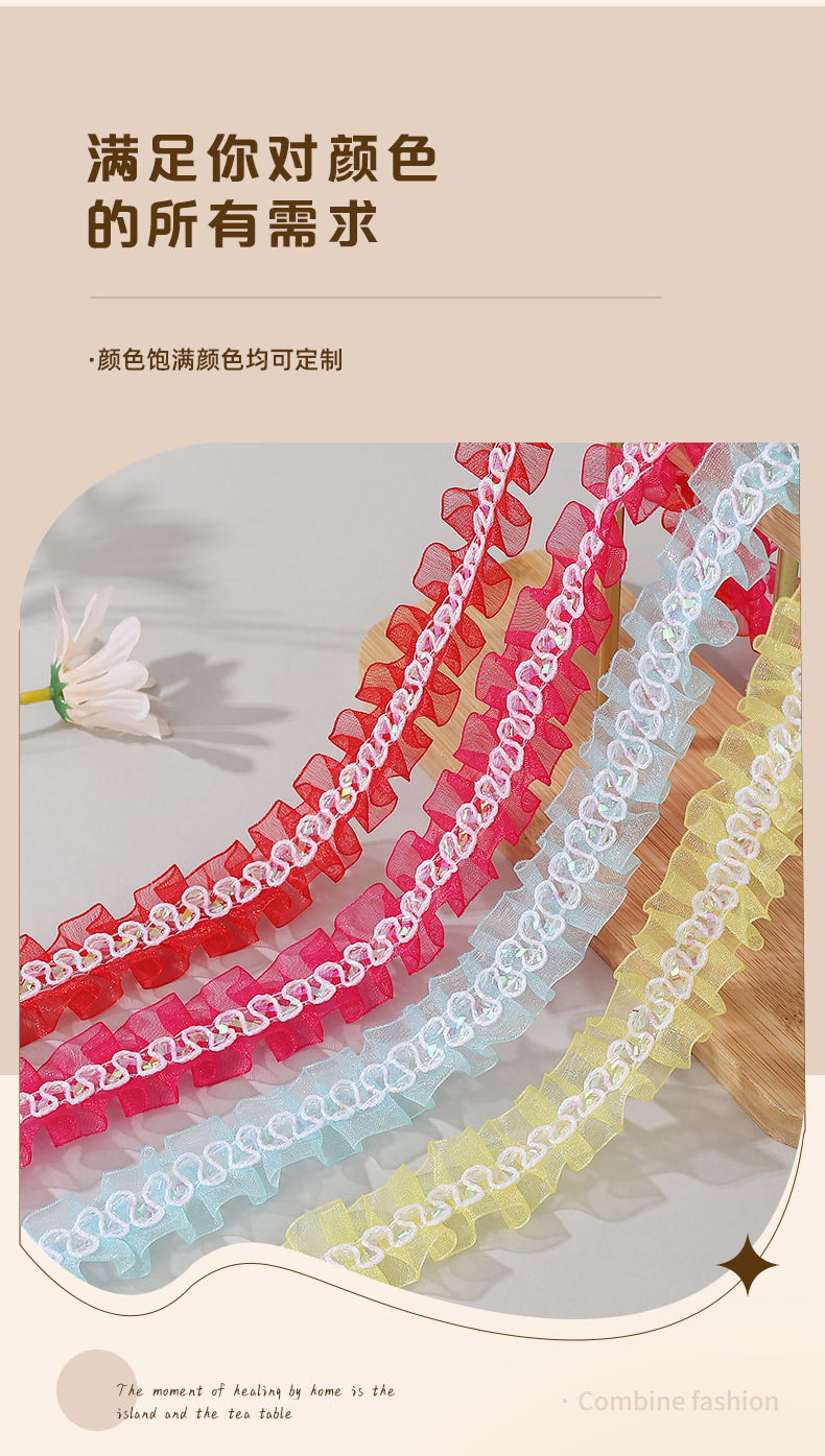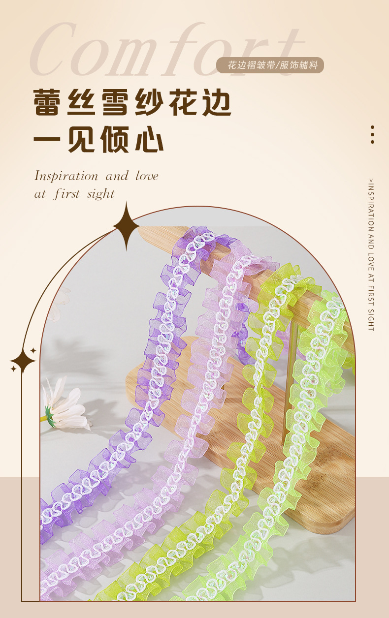 New color pleated elastic organza lace with DIY clothing accessories fungus discount lace accessories wholesale
