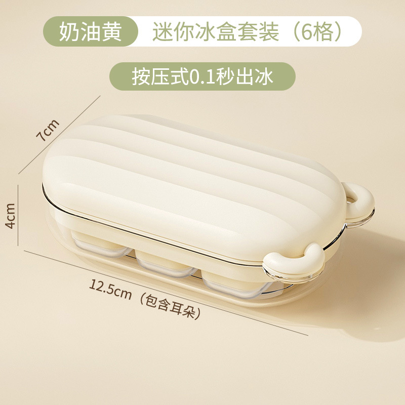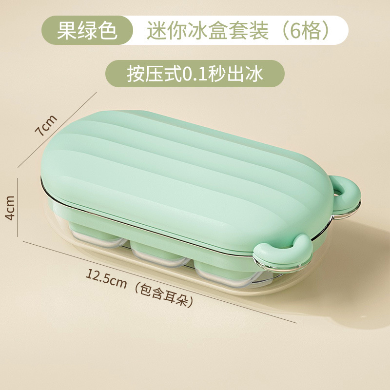 新款小熊按压冰格硅胶冰块模具6格制冰盒家用带盖方形冰模储冰盒
