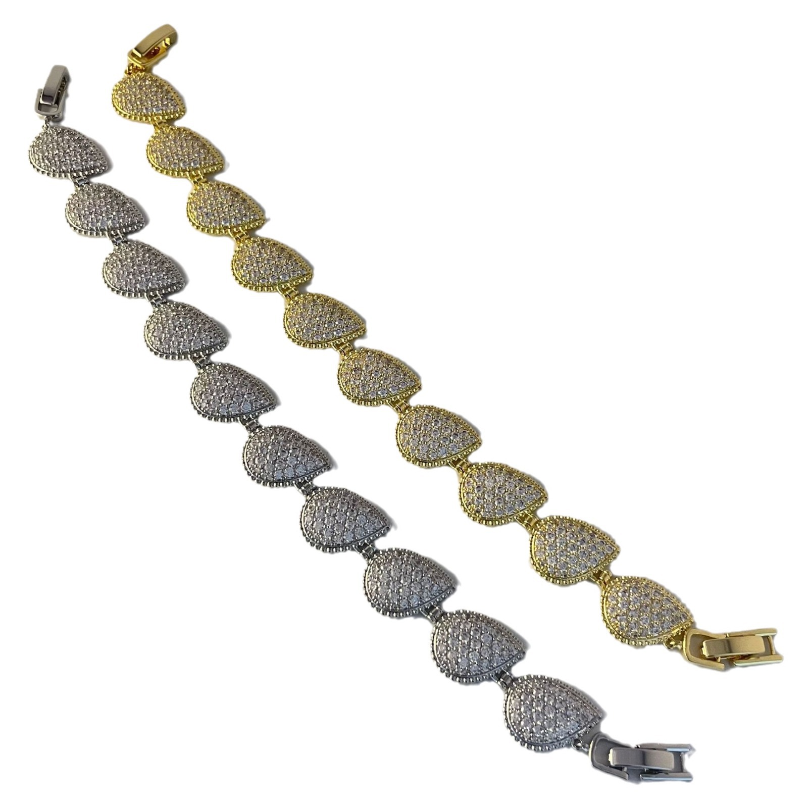 Color: Golden full diamond zircon heart bracelet