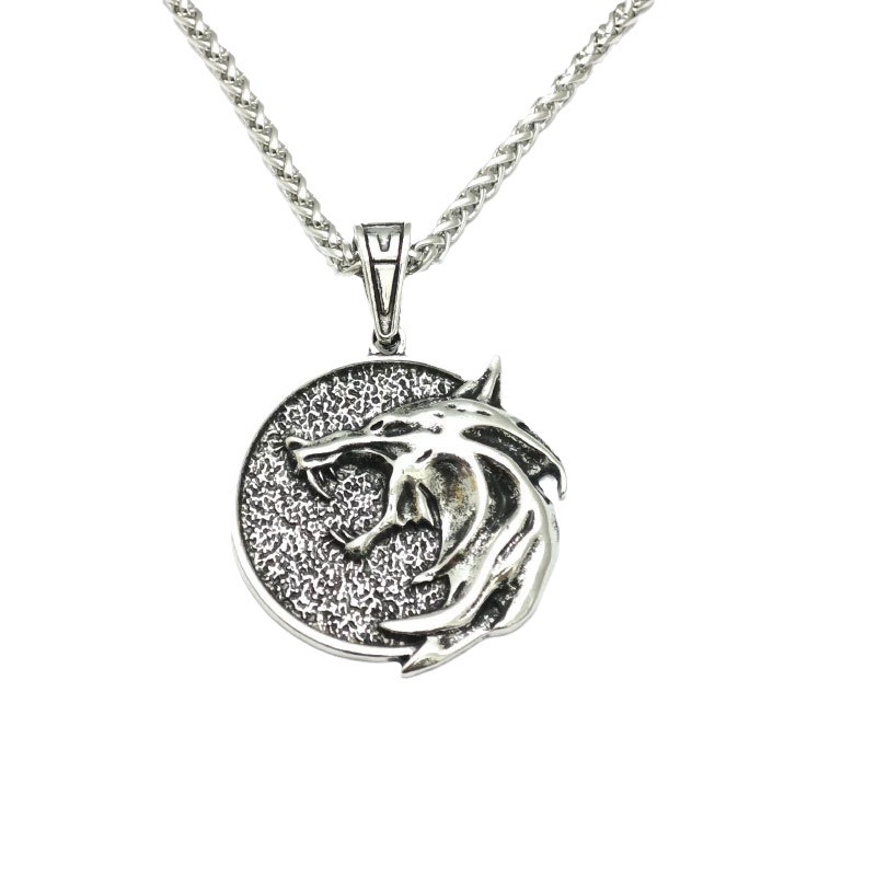 Cross-border European and American Viking Wolf Head Pendant Necklace Male Wizard Pendant Medal Nordic Norwegian Wind Jewelry Factory Wholesale