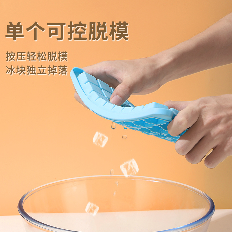 Customized Food-Grade Silicone Pressed Ice Tray Easy to Release Ice Mold with Lid Household Homemade Ice Cube Storage Ice Box