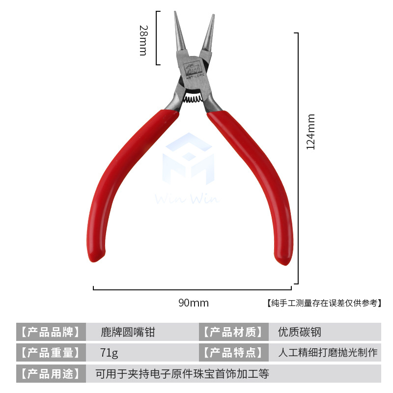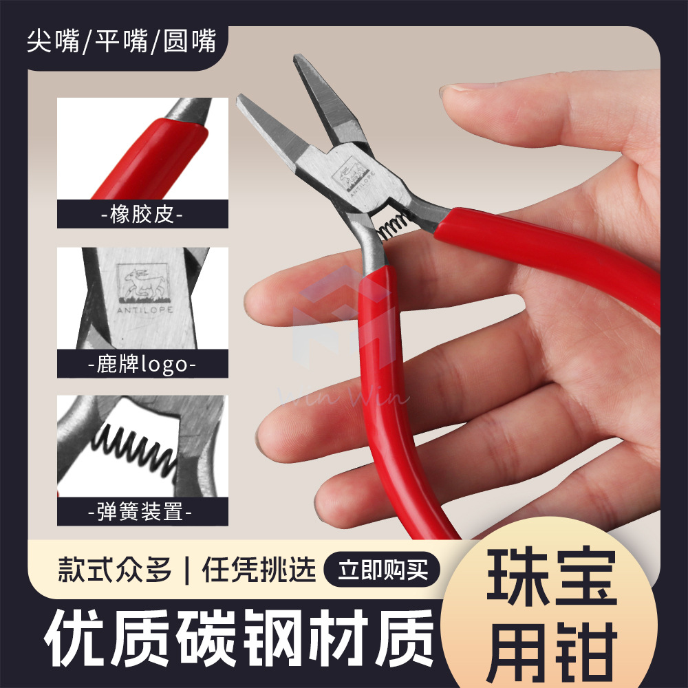 Deer brand toothless pliers flat mouth round mouth tsim pliers gold and silver jewelry processing special mold holding sharp nose pliers