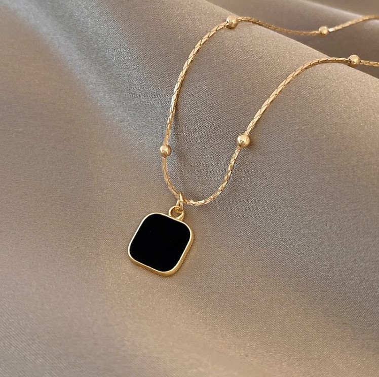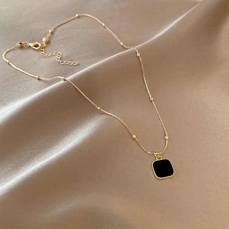 Black Dark Geometric Square Necklace Women's Light Luxury Niche Design Clavicle Chain 2024 New Ins Hip Hop