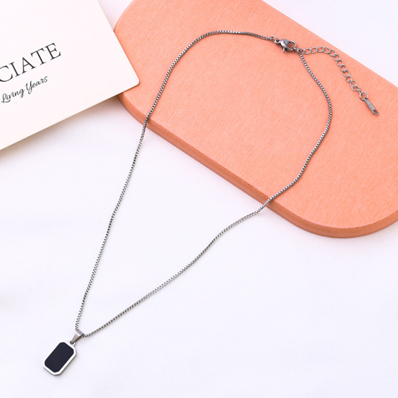 New Trendyy Golden Square Black Shell Titanium Steel Necklace Geometric Stylish Non-Fading Jewelry Versatile Clavicle Chain Customization