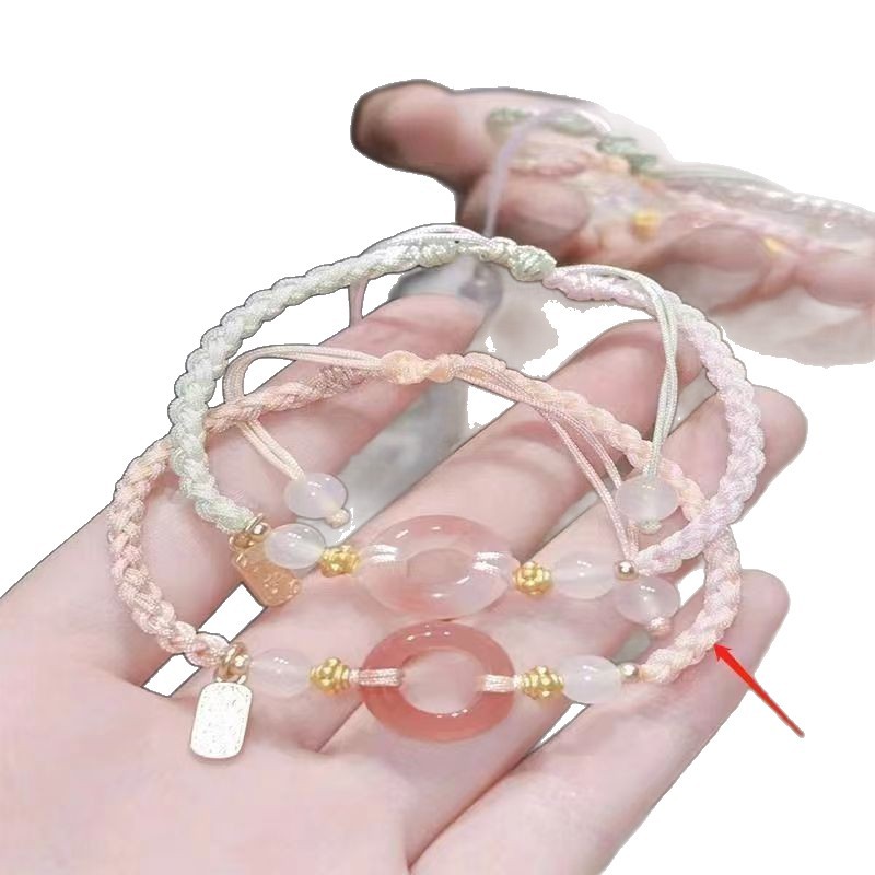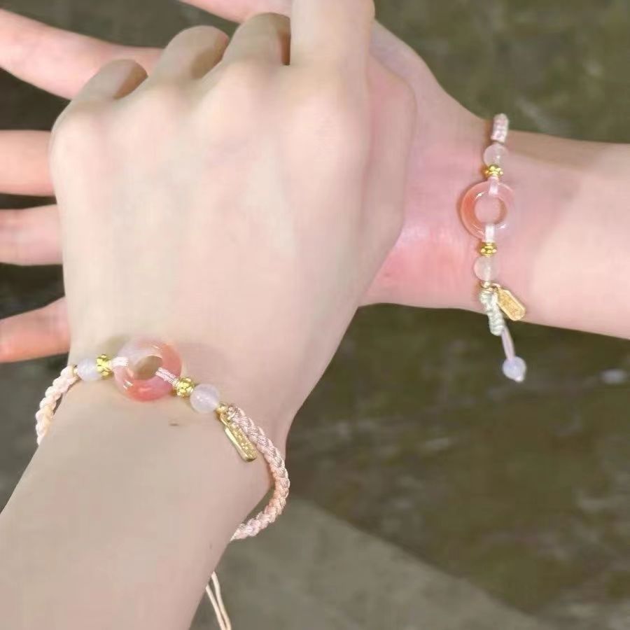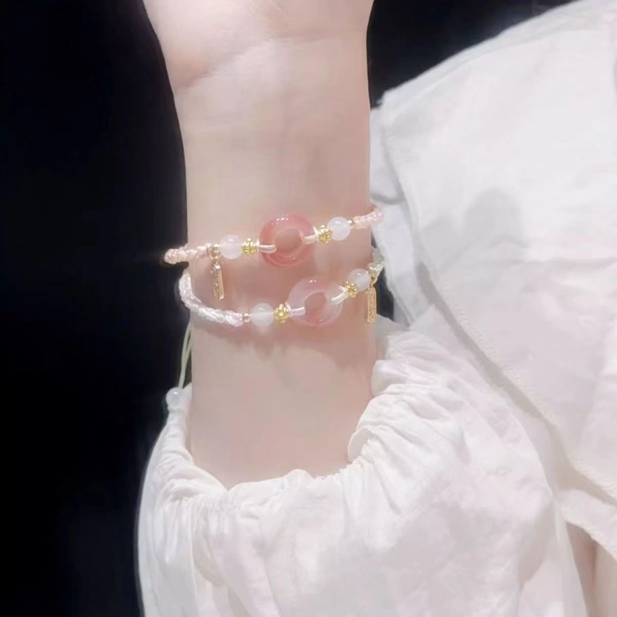 Taozhiyaoyao Pink Safety Buckle Bracelet Girl's Heart Color Matching High-Looking Peace and Joy Hand-Woven Hand Ornaments