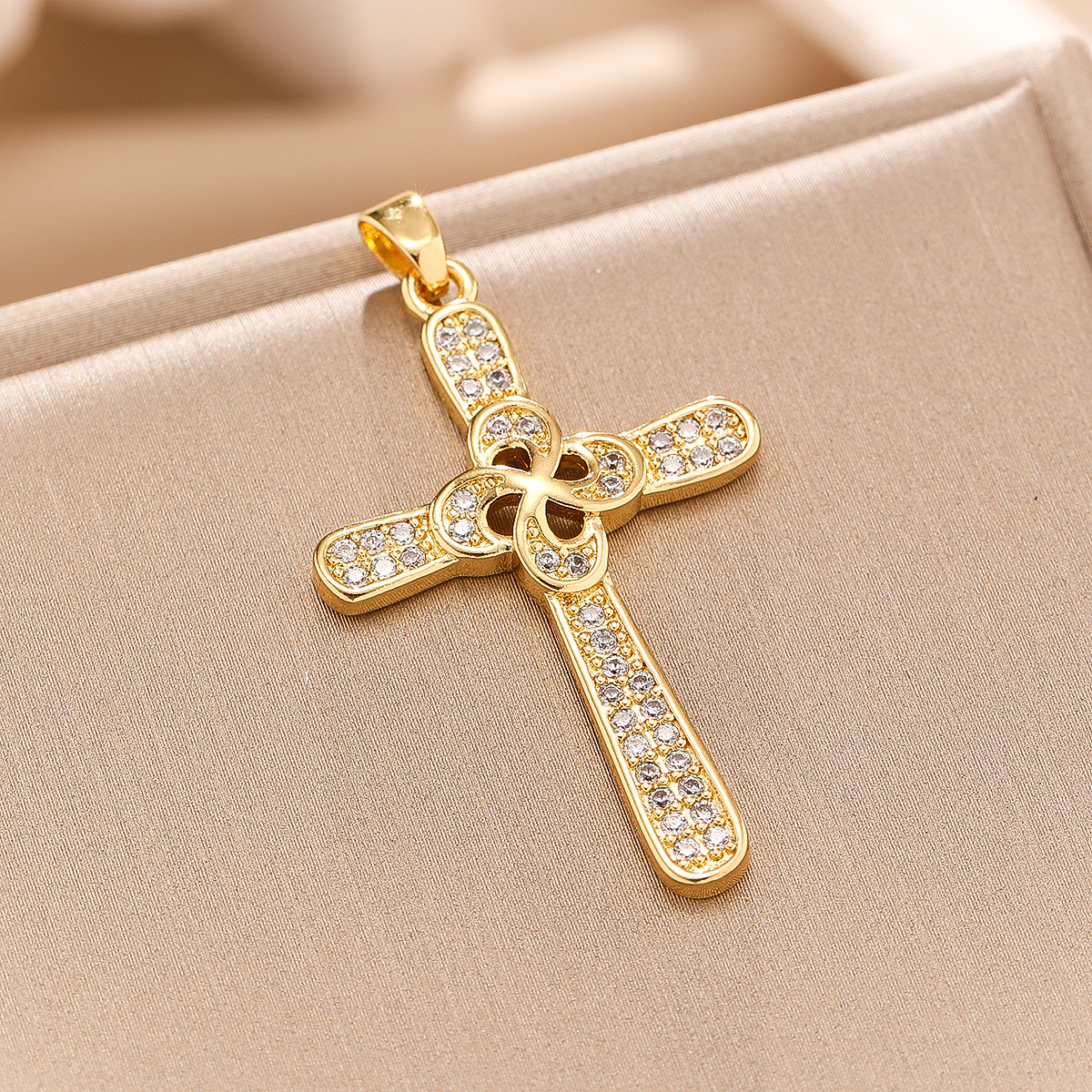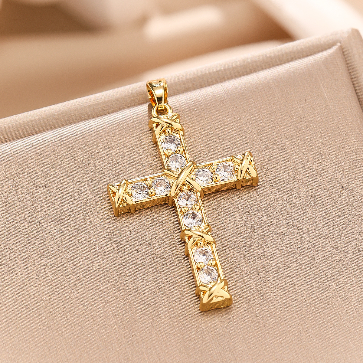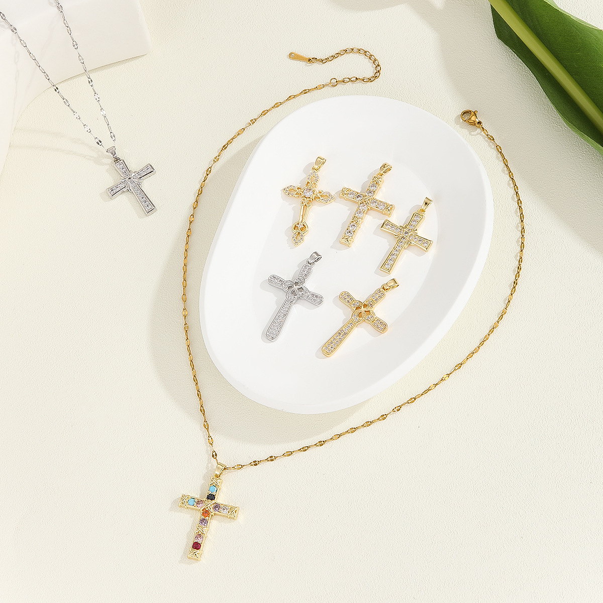European and American style cross-border hot religious jewelry simple copper inlaid zircon stainless steel chain necklace cross pendant