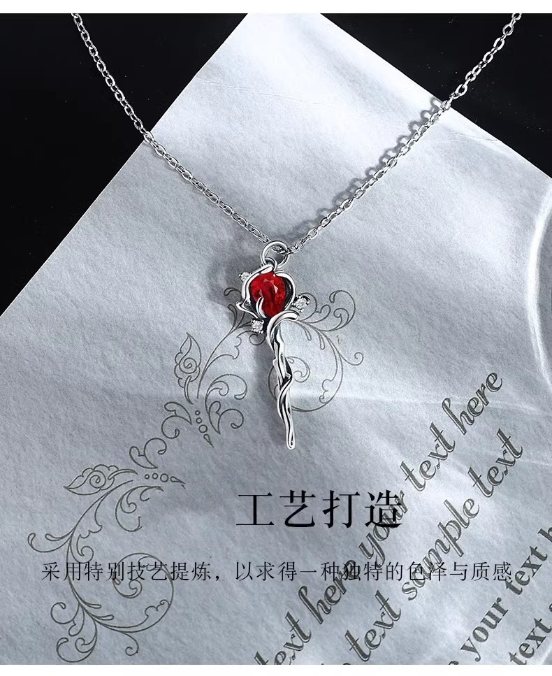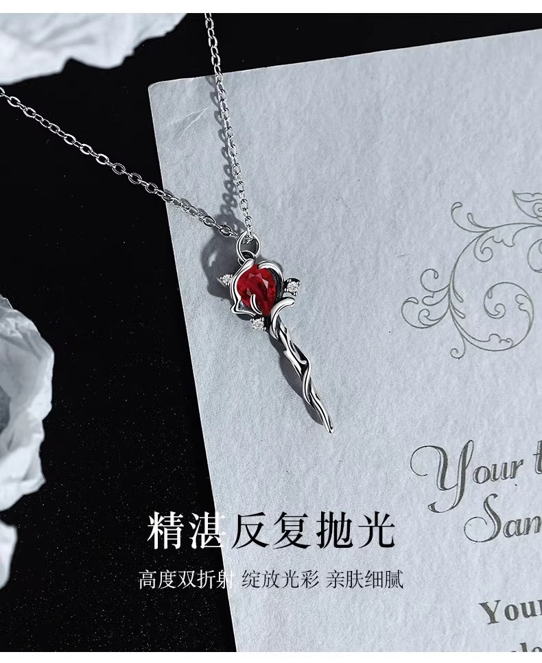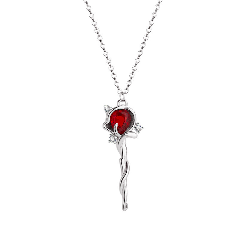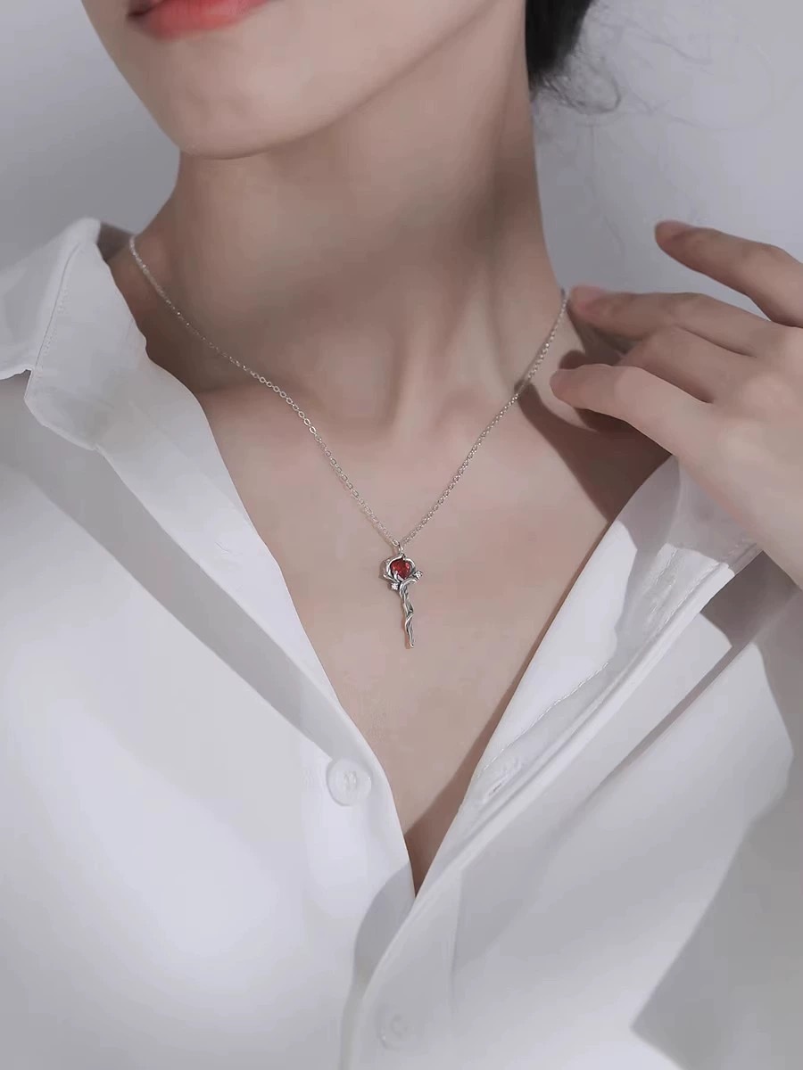 Red Riding Book Same Style Rose Scepter Necklace Women's Ins Style Niche Temperament High-Level Sense Dark Style Trendy Explosions