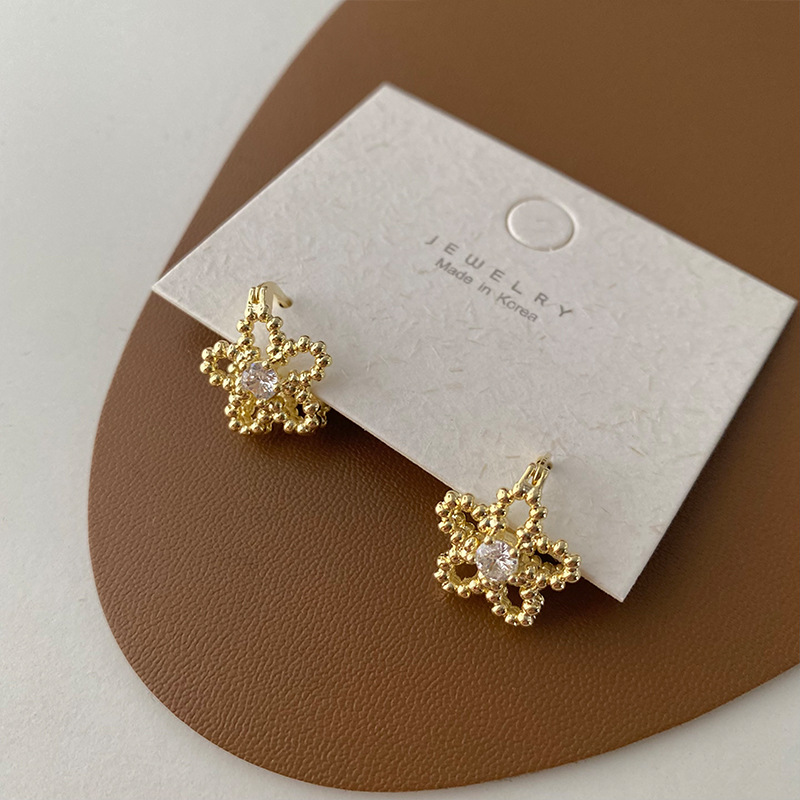 Hollow Bead Flower Earrings Women's Niche Design Simple Elegant All-match Light Luxury High-end Ear Buckle Earrings
