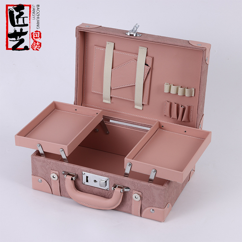 High-grade Cosmetics Storage Box High-grade Sense Large Capacity Lifting Design PU Leather Box Skin Care Cosmetic Supplies Gift Box