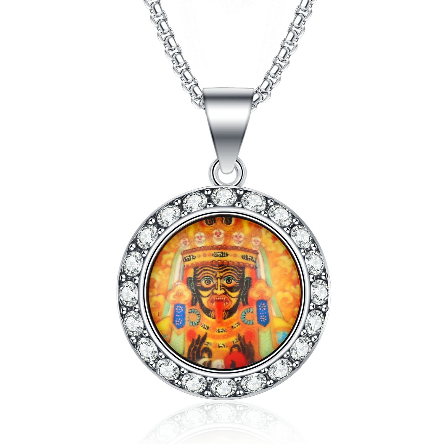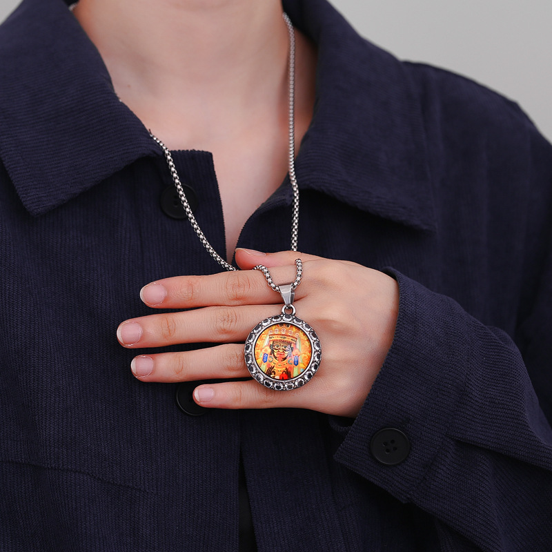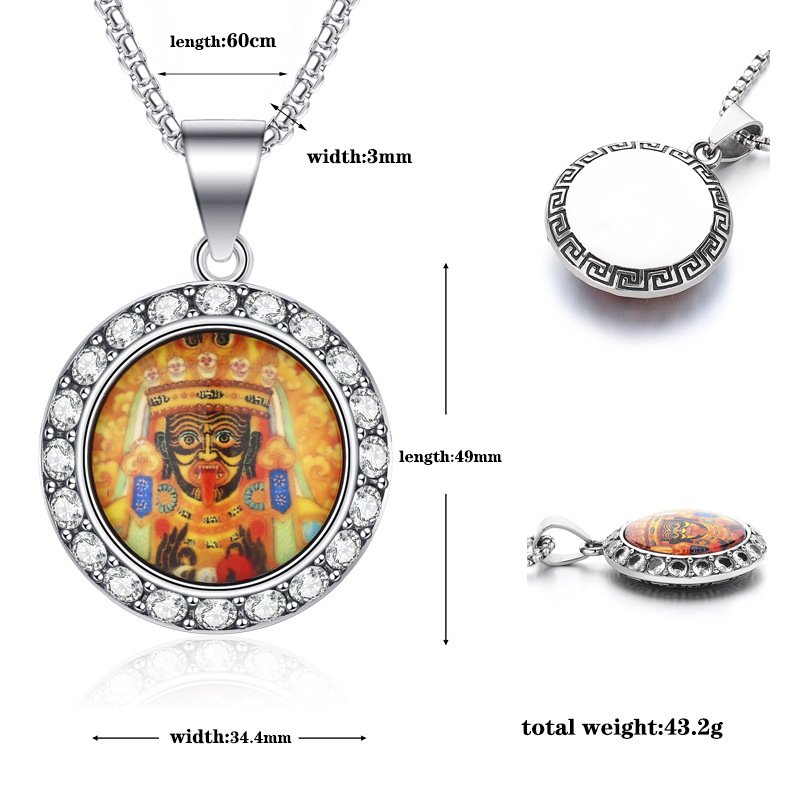 新中式国潮西藏扎基拉姆唐卡前世今生钛钢佛牌镶钻庙会吊坠项链 |