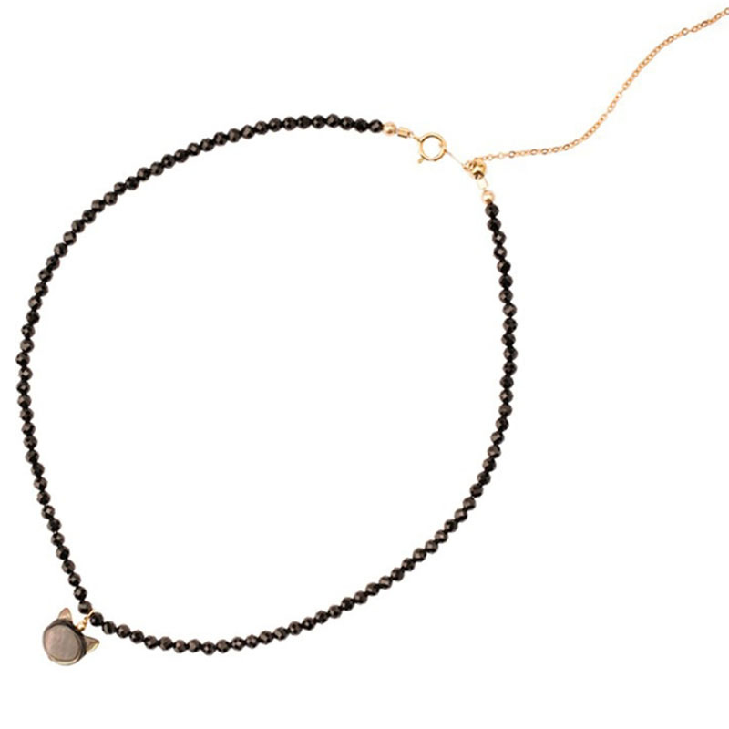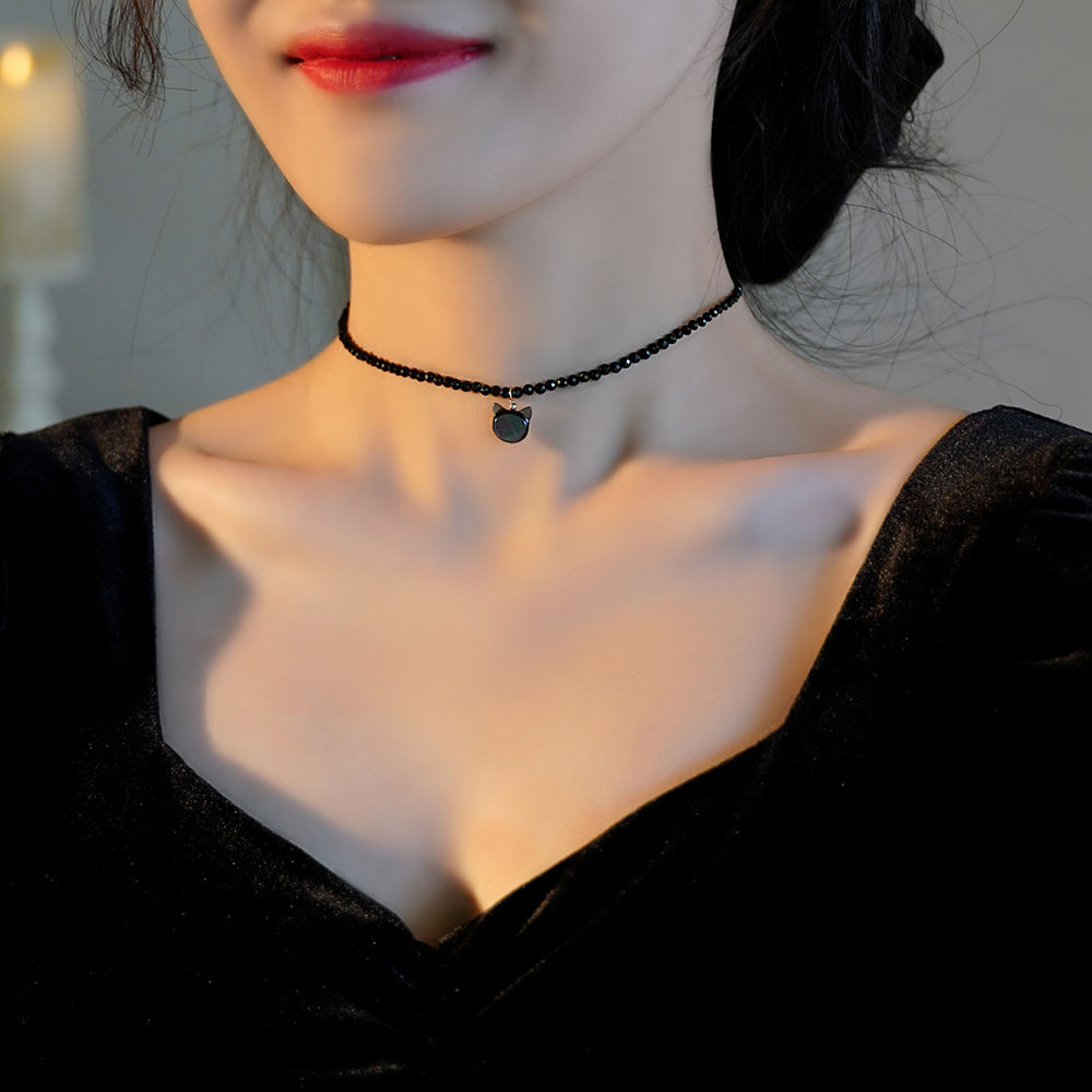 Shiny Black Spinel Cat Necklace Women's All-match High-end Necklace Clavicle Chain Light Luxury Women's Color-free Necklace