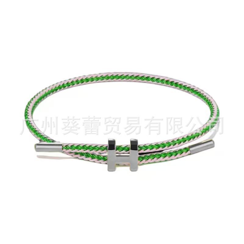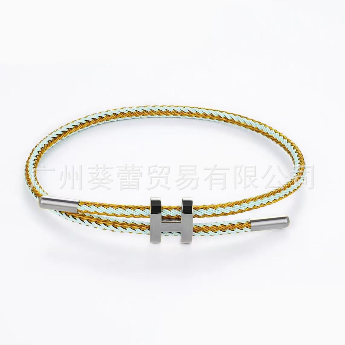Steel color H-buckle fine wire rope bracelet can wear 3D hard gold jewelry hand rope transfer beads Lutong red rope wholesale