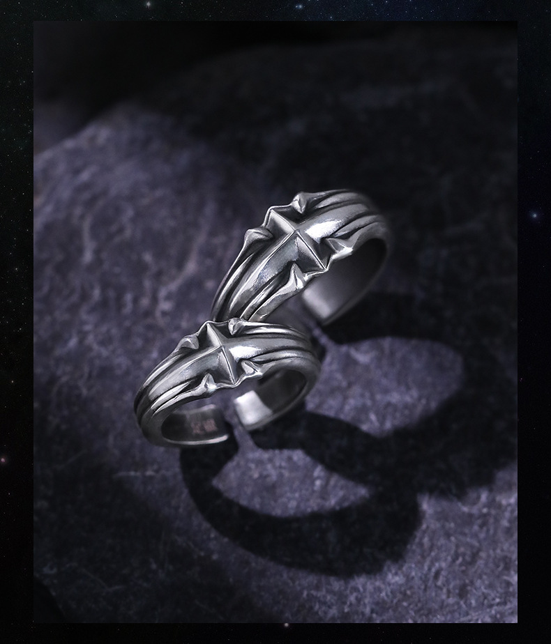 Chiba "Star" personality retro ring men's high-end single ring men's punk style Thai silver tail ring
