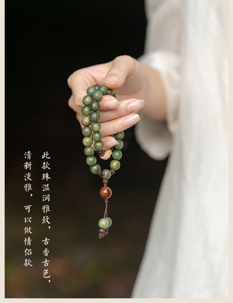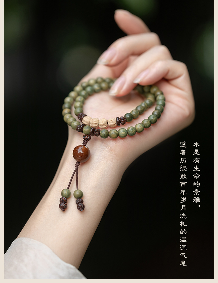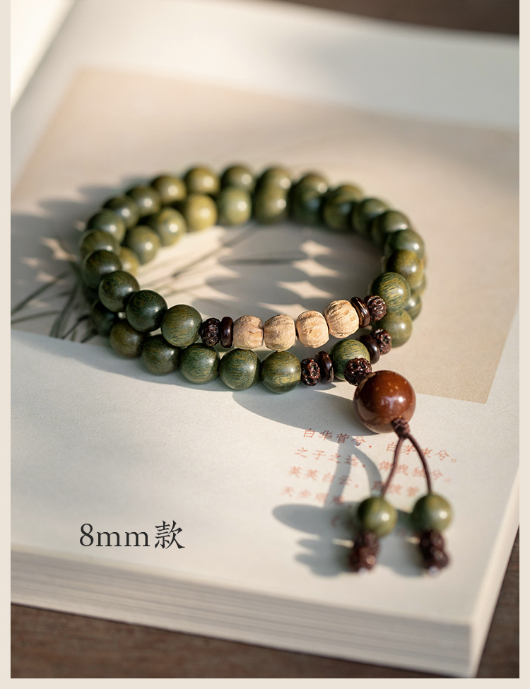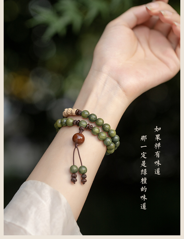 Multi-Circle Old Material Green Sandalwood Buddha Beads Bracelet for Women Mori Students Sandalwood Peach Seed Bracelet for Couple Ethnic Men