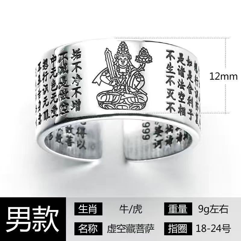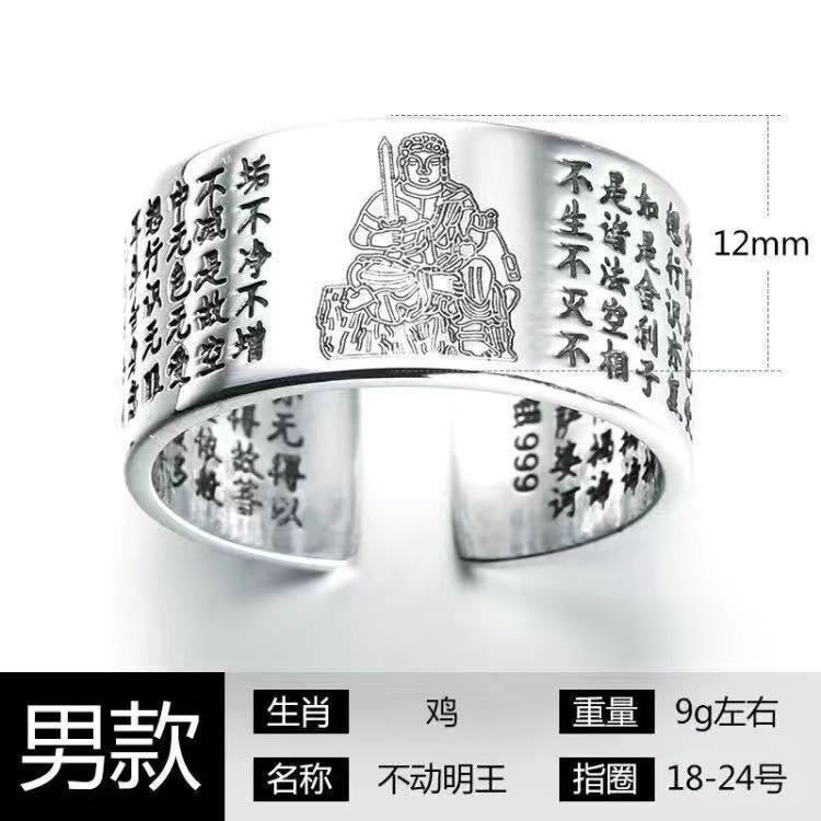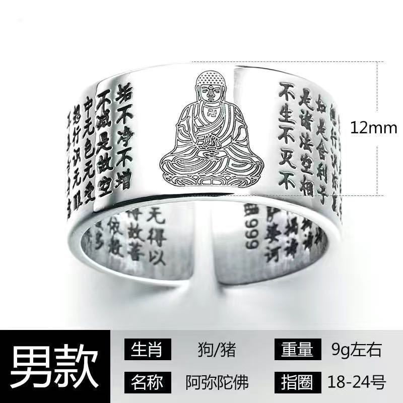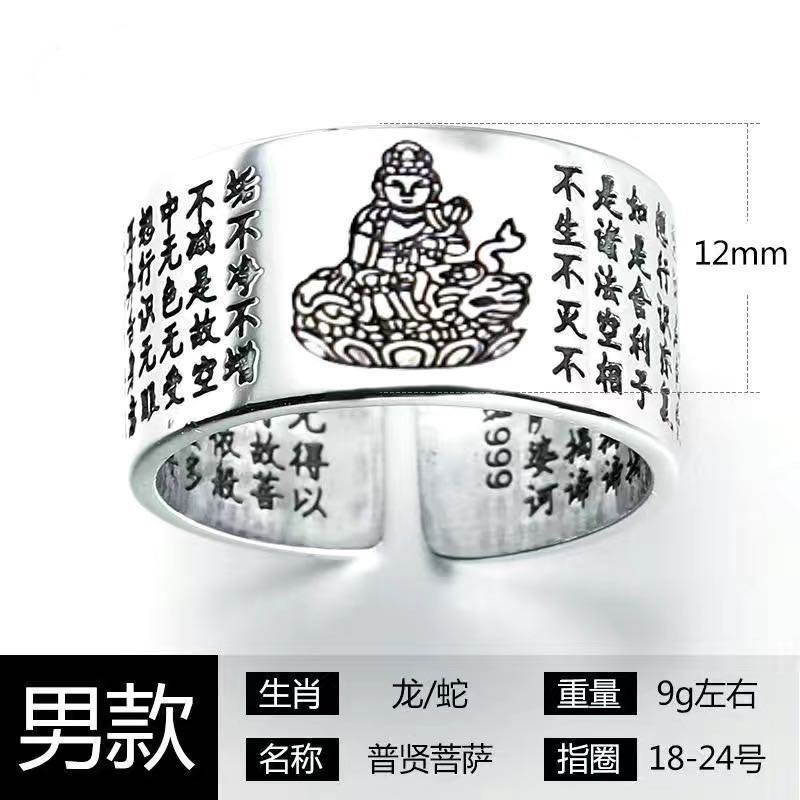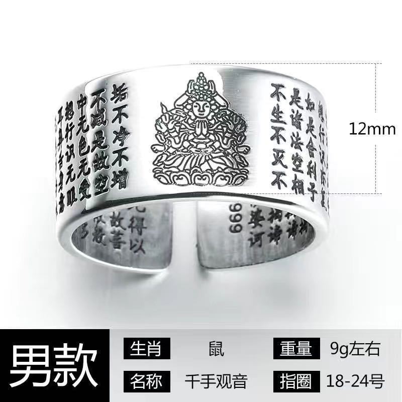 Vintage Silver-plated Heart-sutra Ring for Men and Women Eight Patron saint Simple Aggressive Open-ended Buddha Ring