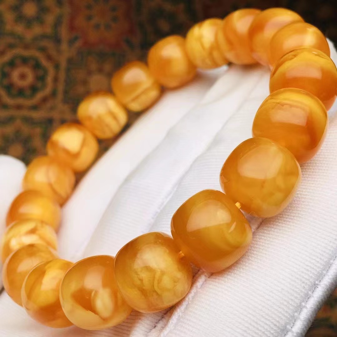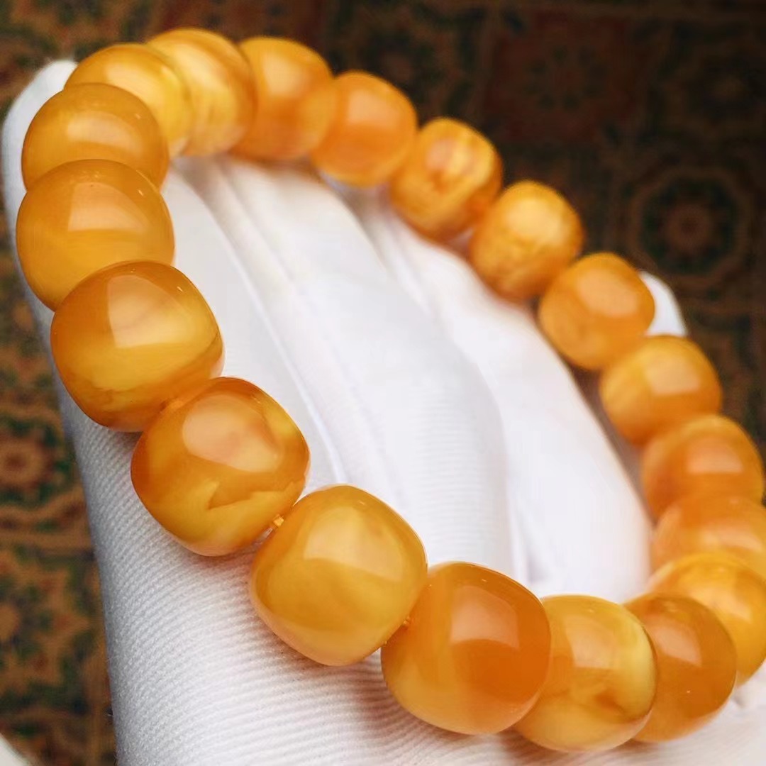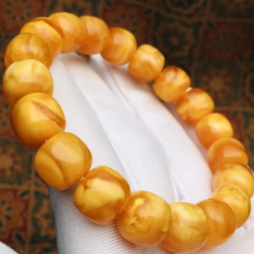 【品名】天然蜜蜡老蜜花蜡老型手链