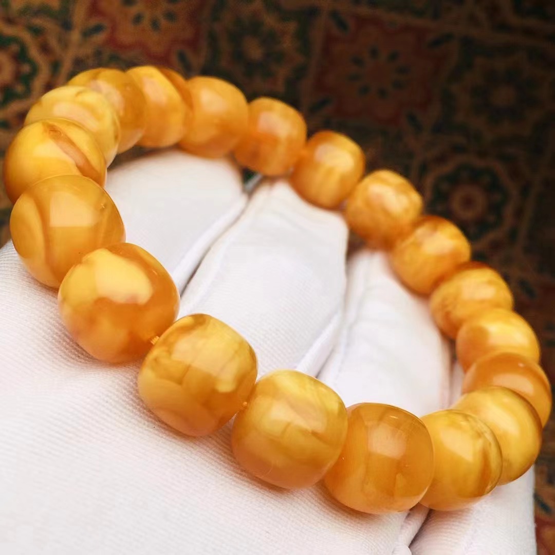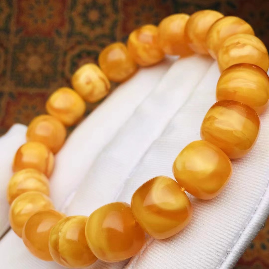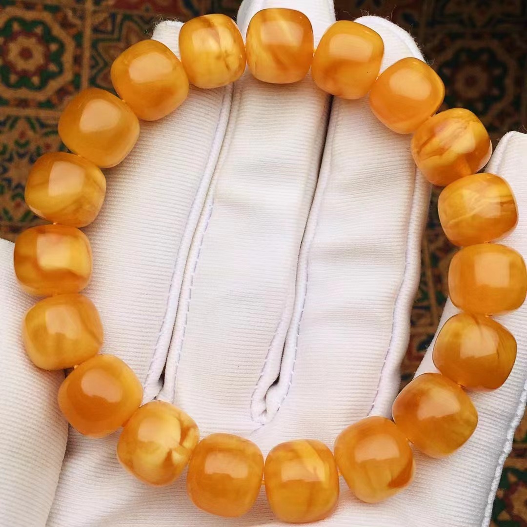 【品名】天然蜜蜡老蜜花蜡老型手链
