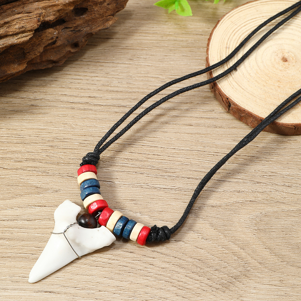Shark Teeth Necklace Men's and Women's Simple Pendant European and American Jewelry Bohemian Teeth Carving Handicraft Jewelry