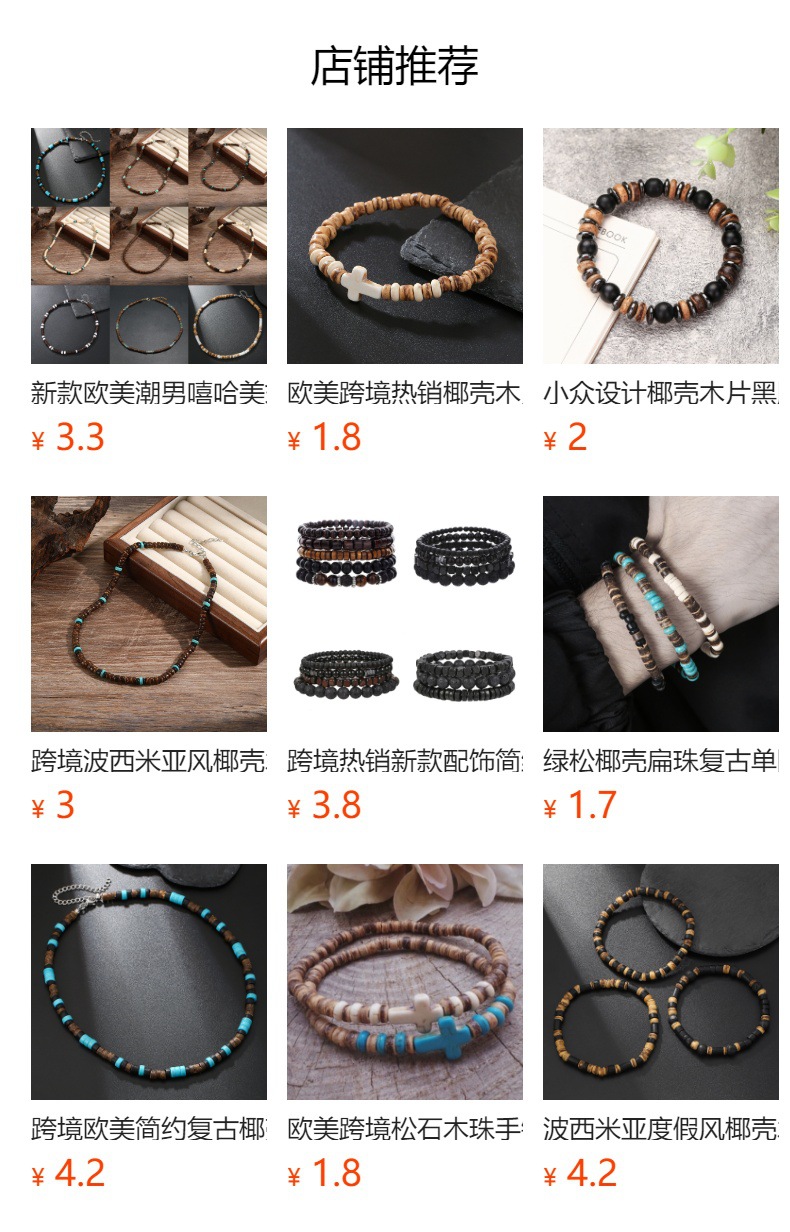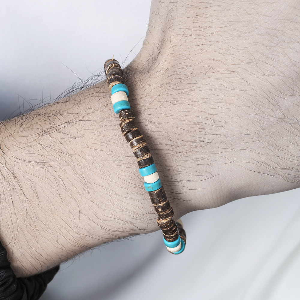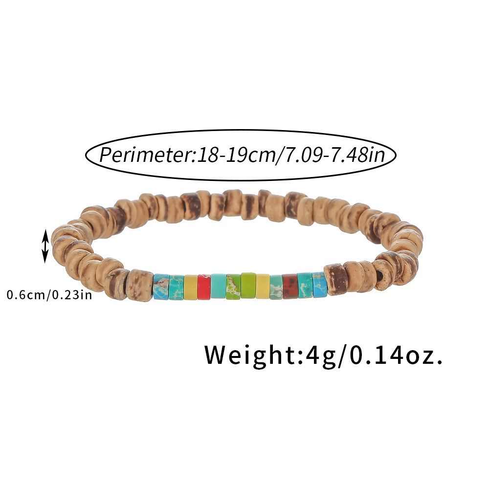 Green Pine Coconut Shell Flat Beads Retro Single Loop Bracelet Tribal Holiday Style Mix and Match Simple Niche Tablet Shaped Bracelet for Men and Women