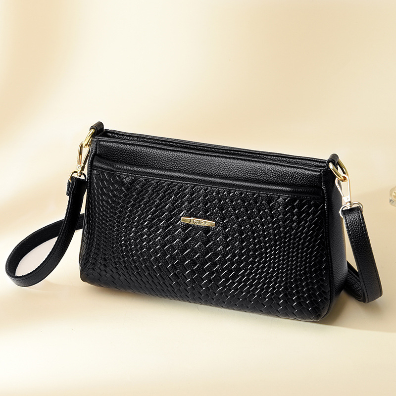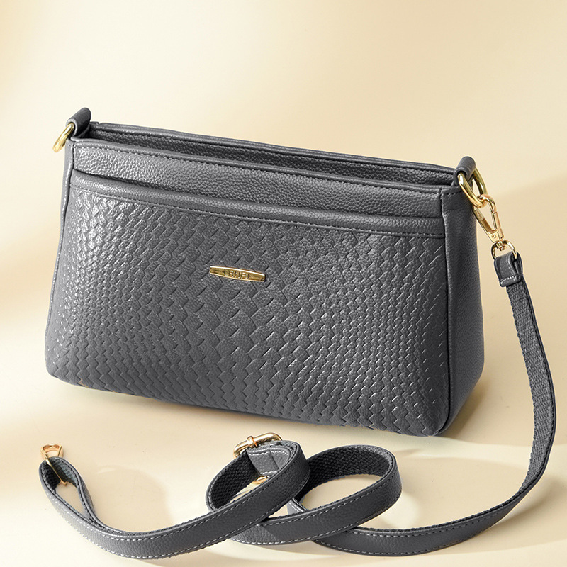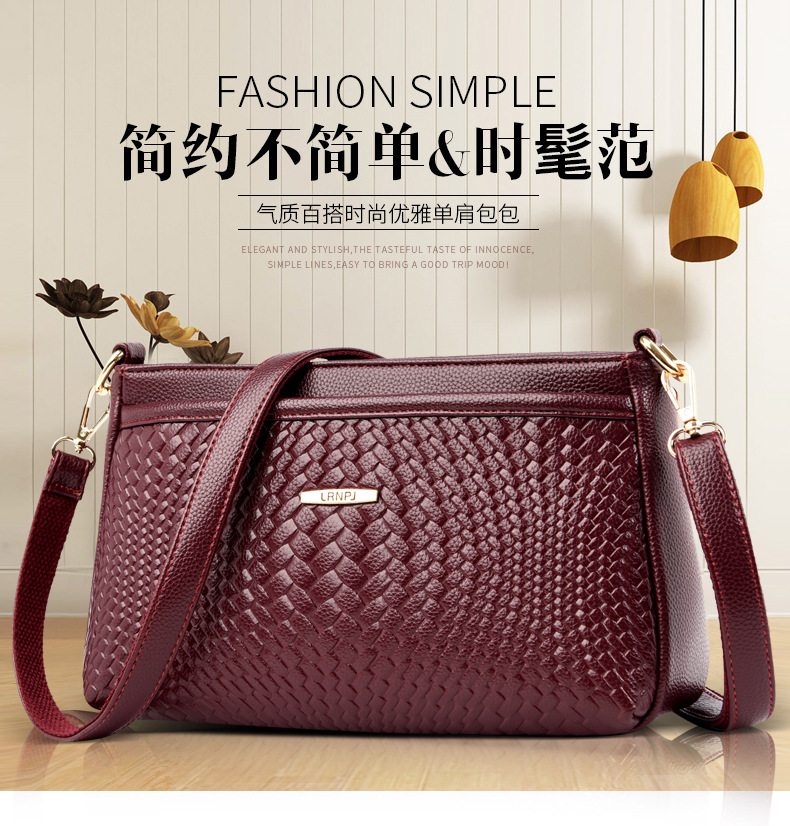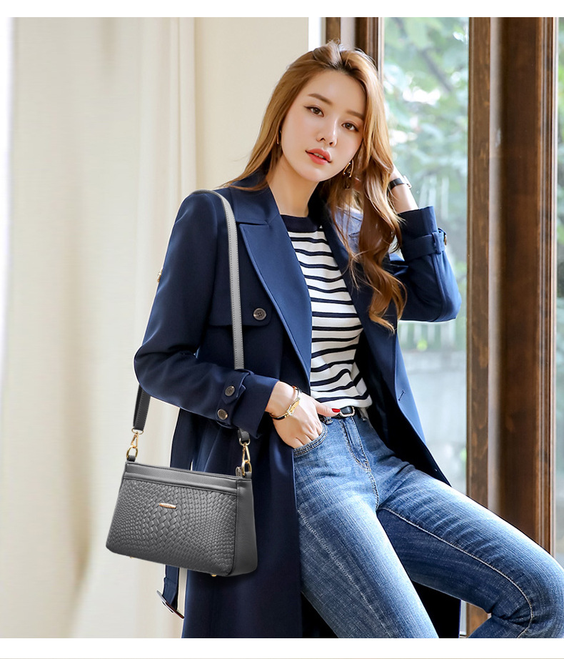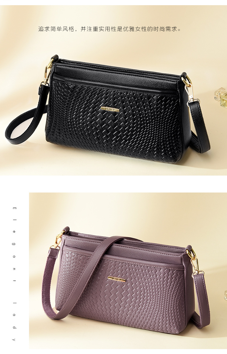 Bag Women's 2024 New Texturized Soft Leather Woven Single Shoulder Crossbody Simple Multi-layer Large Capacity Middle-aged Mother Bag