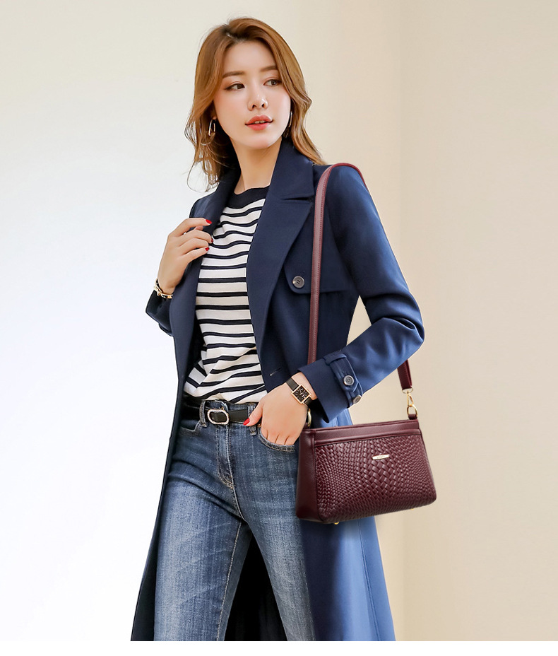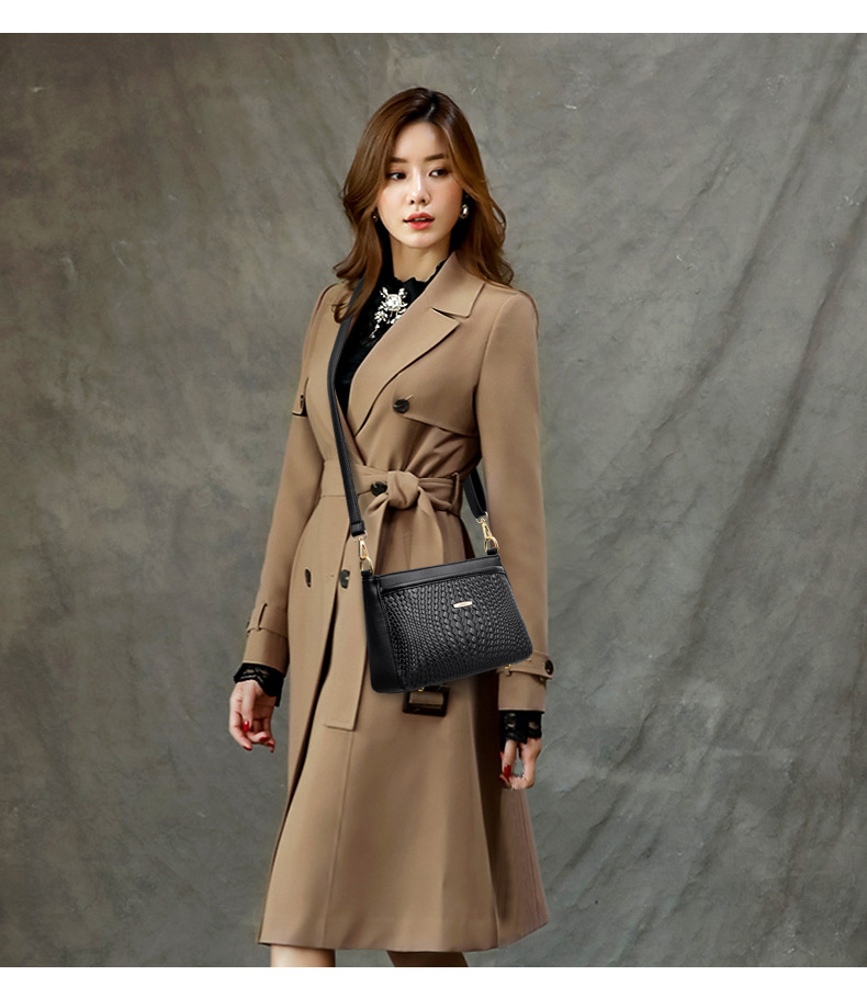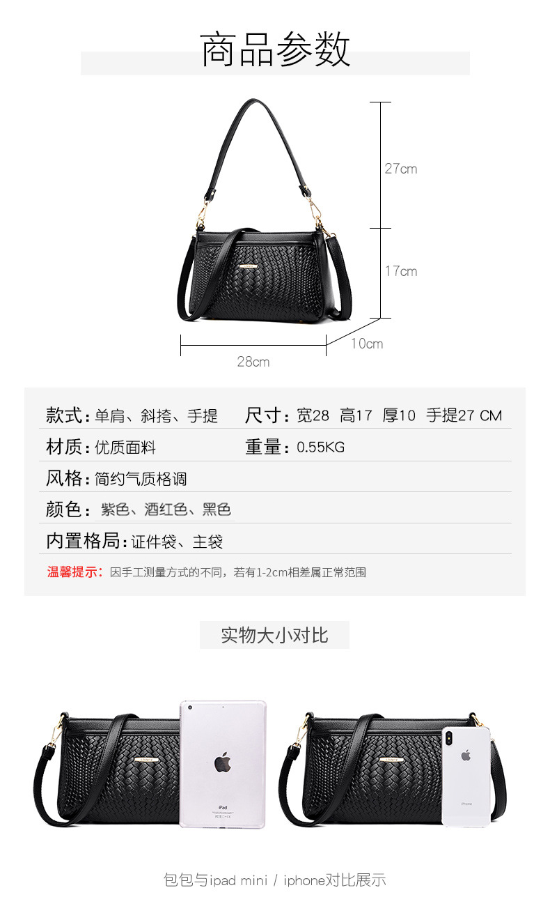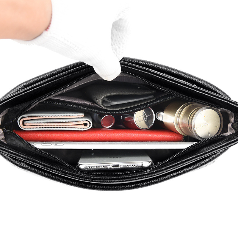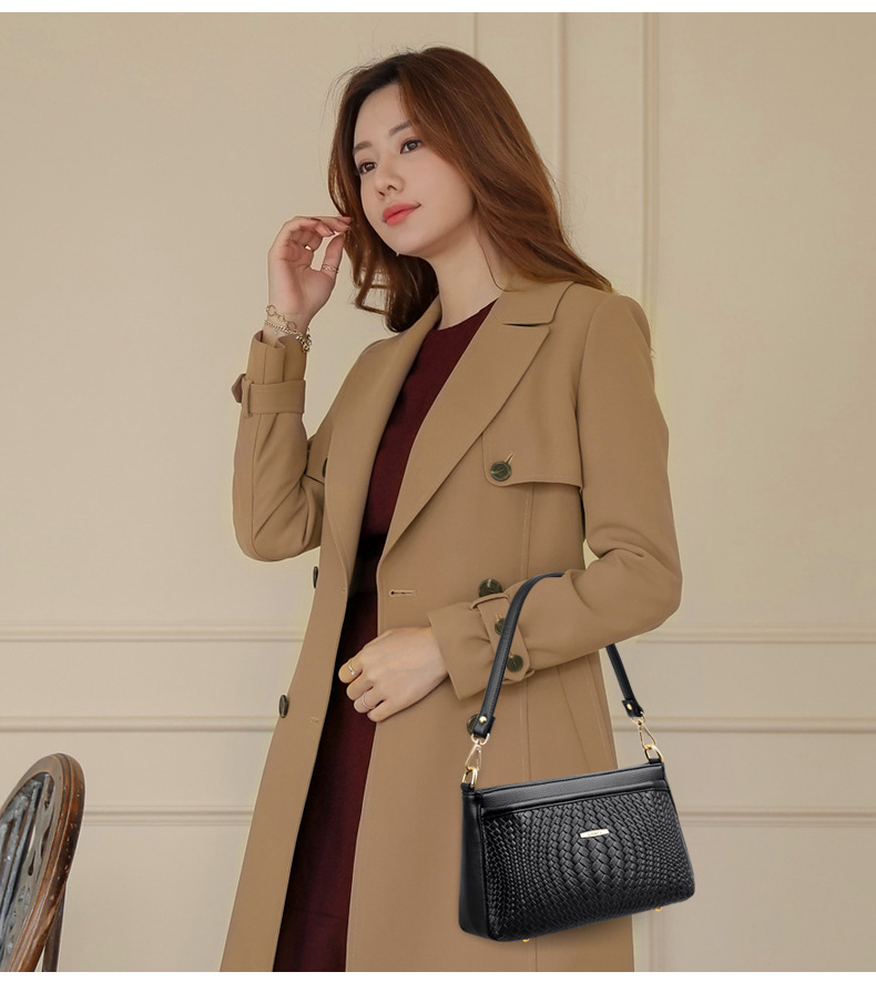 Bag Women's 2024 New Texturized Soft Leather Woven Single Shoulder Crossbody Simple Multi-layer Large Capacity Middle-aged Mother Bag