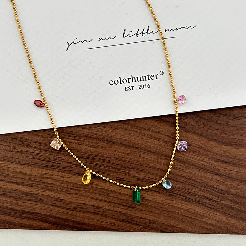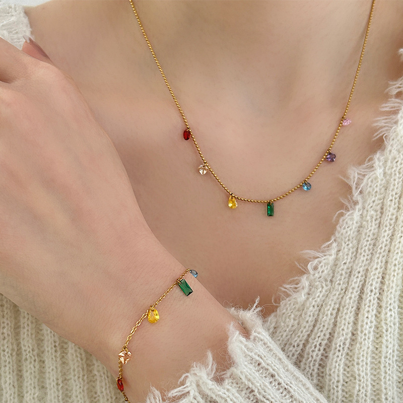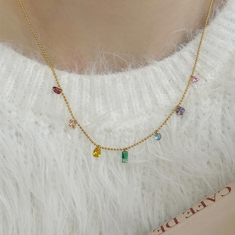 Sweet Cool Fantasy Colorful Colorful Gem Necklace Female Niche Design Super Shiny Girl Fashion All-match Collarbone Chain