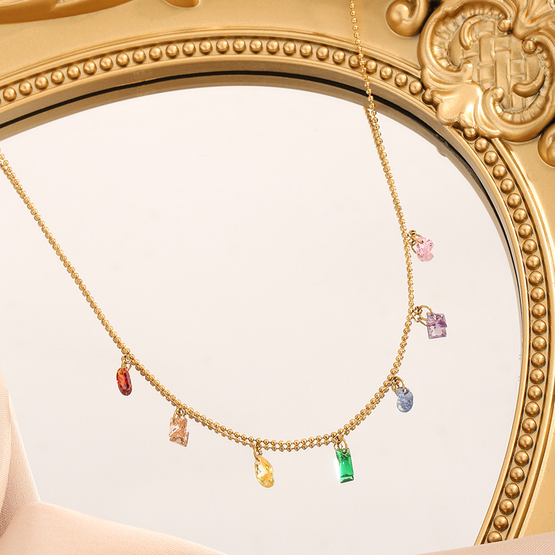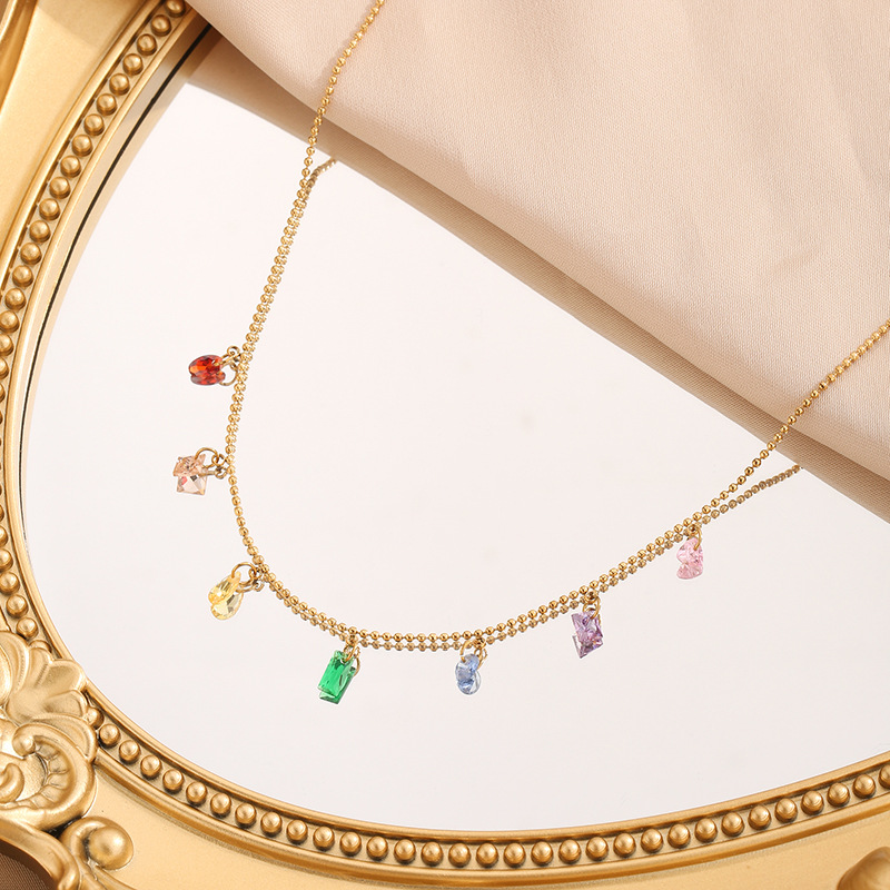 Color: 8988 Colorful Diamond Crystal Necklace Gold
