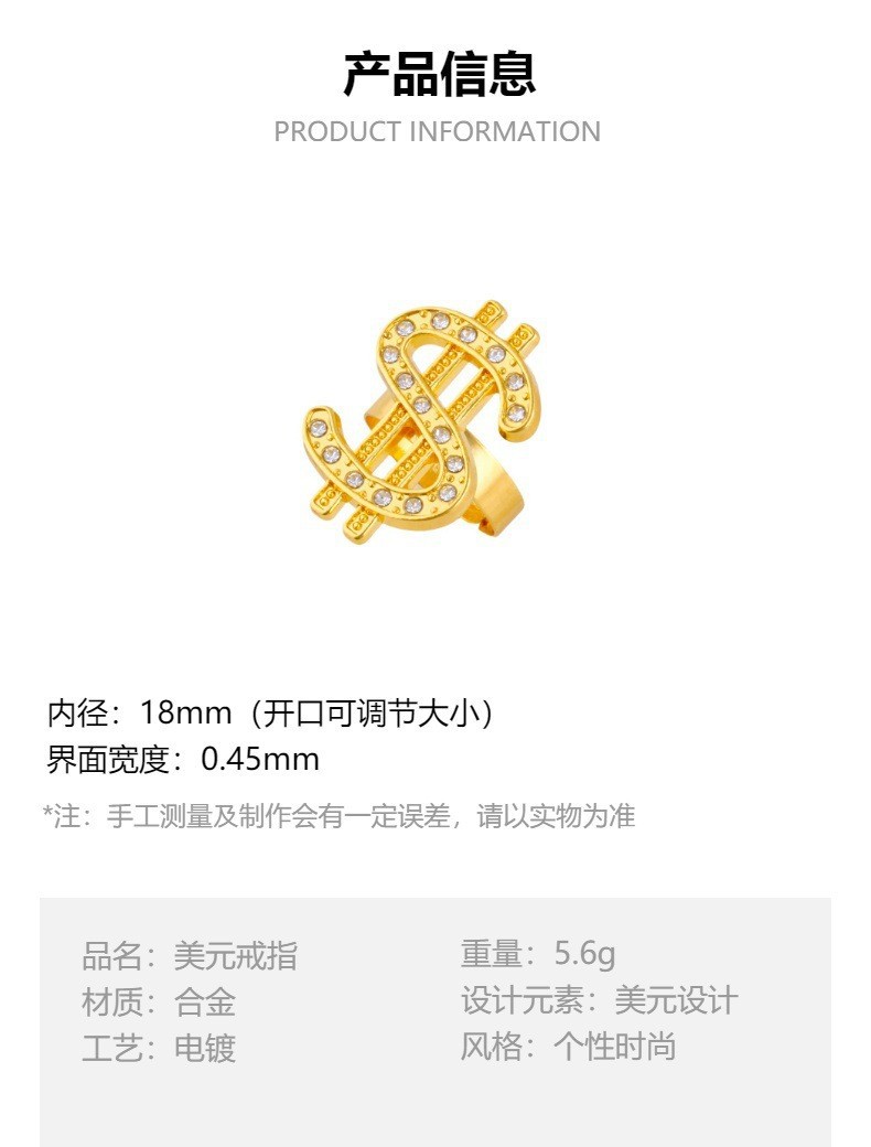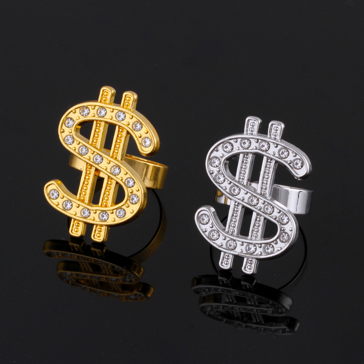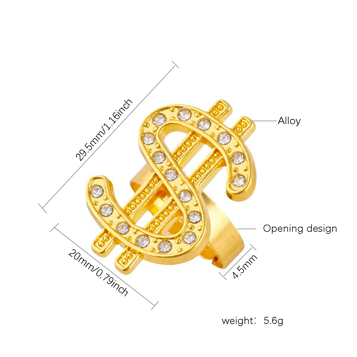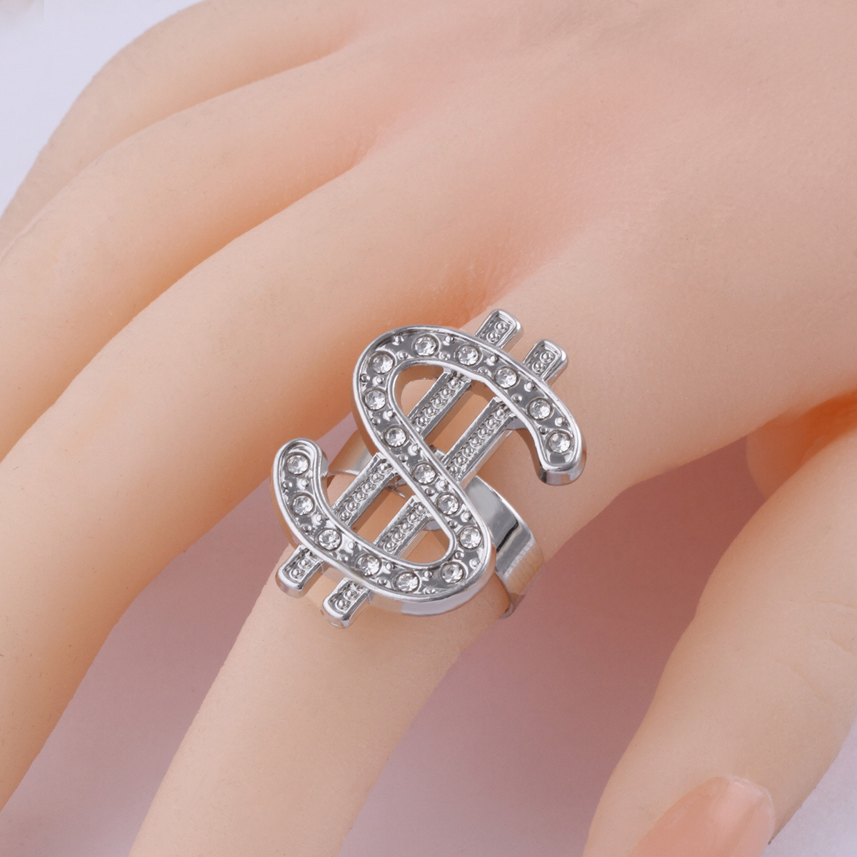 Dollar symbol ring diamond hip-hop HIPHOP European and American fashion Joker exquisite jewelry wholesale cross-border ring