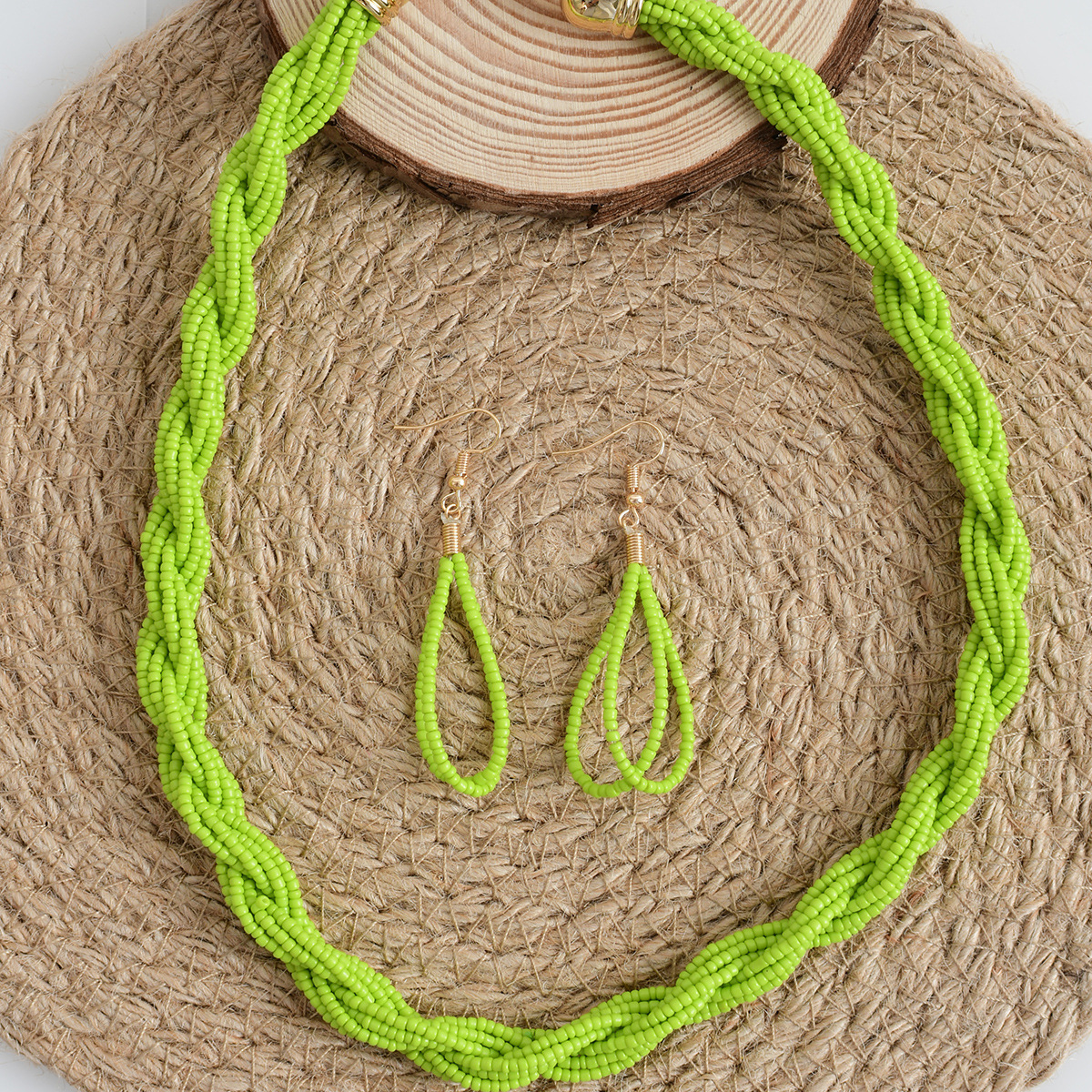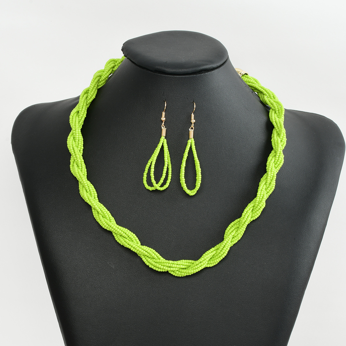 Bohemian Retro Multi-Layer Beaded Handmade Braided Necklace with Earrings European and American Party Clavicle Chain
