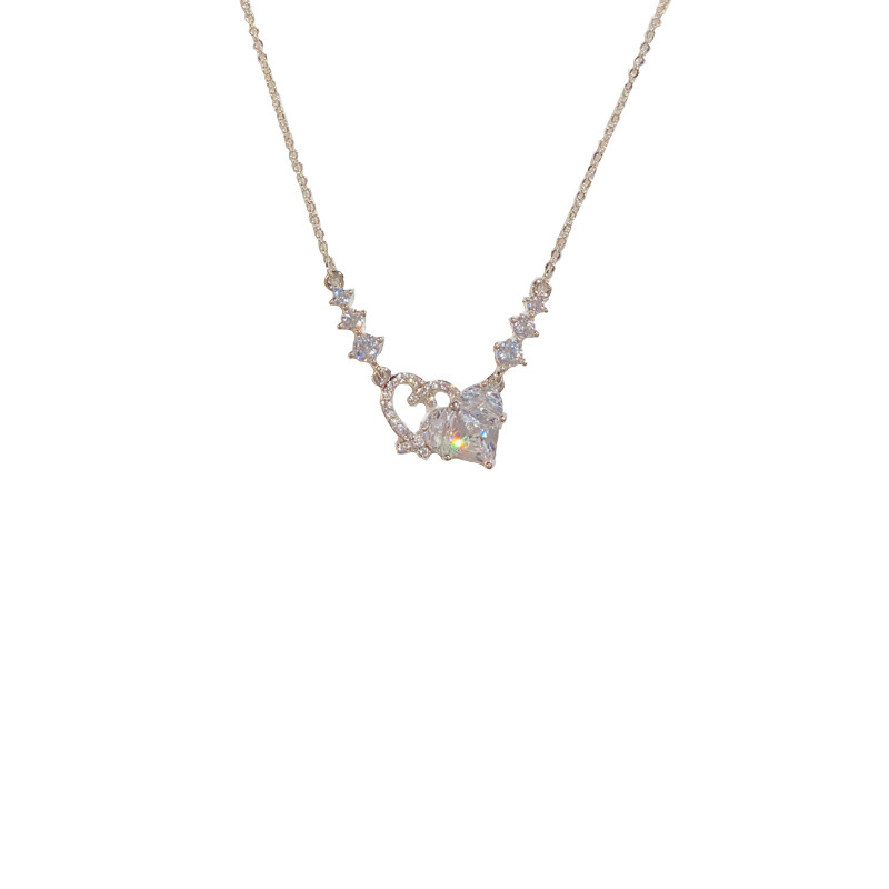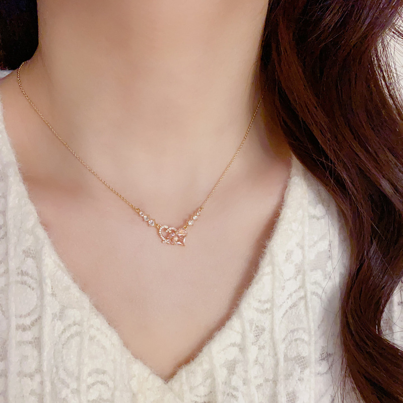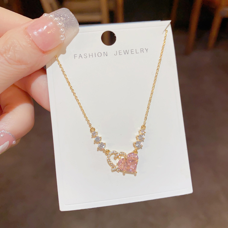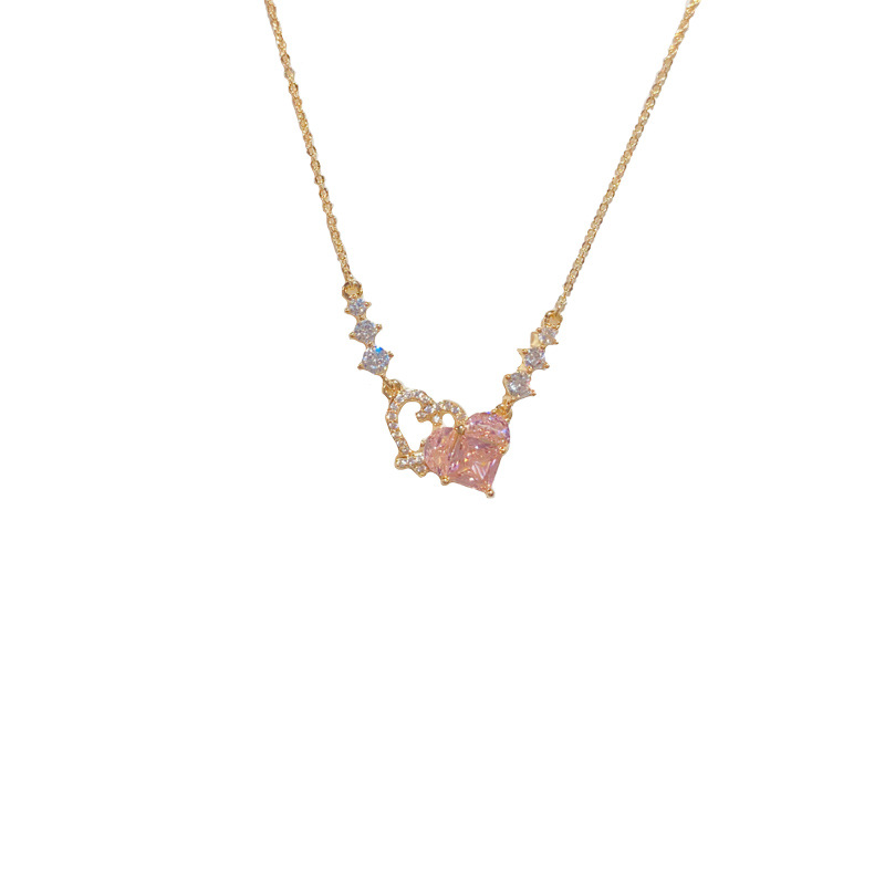 Color: Gold-love pink zircon necklace (thick gold plating)