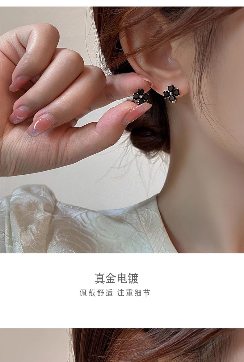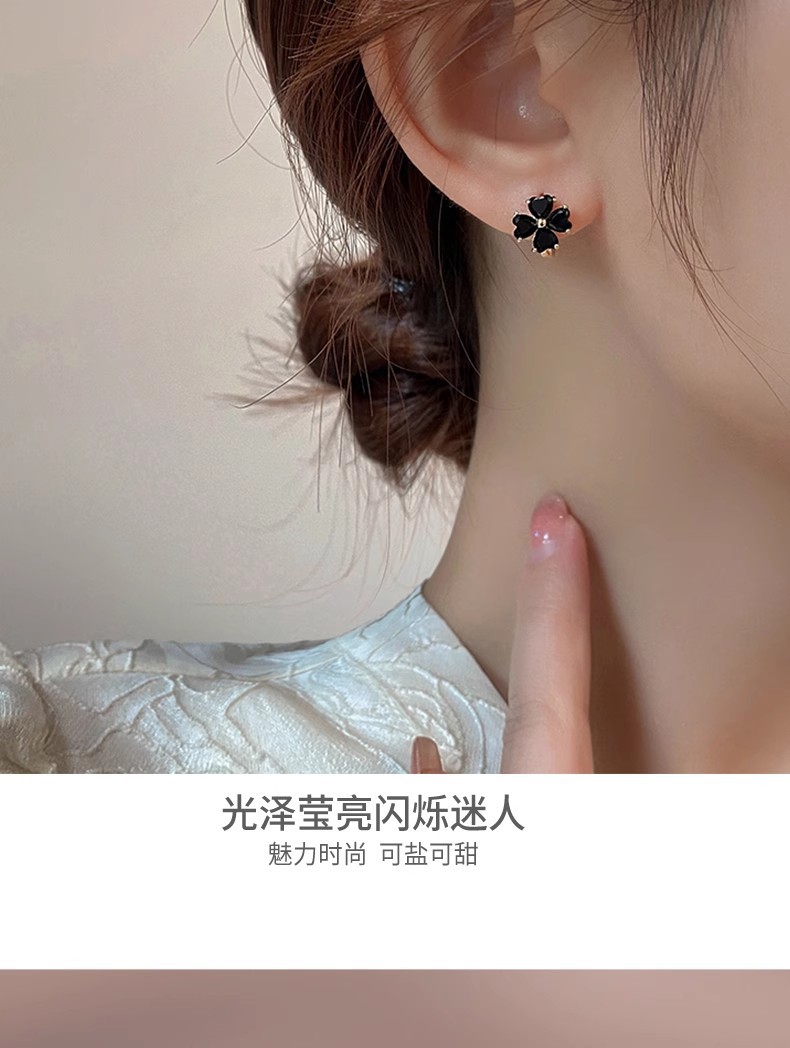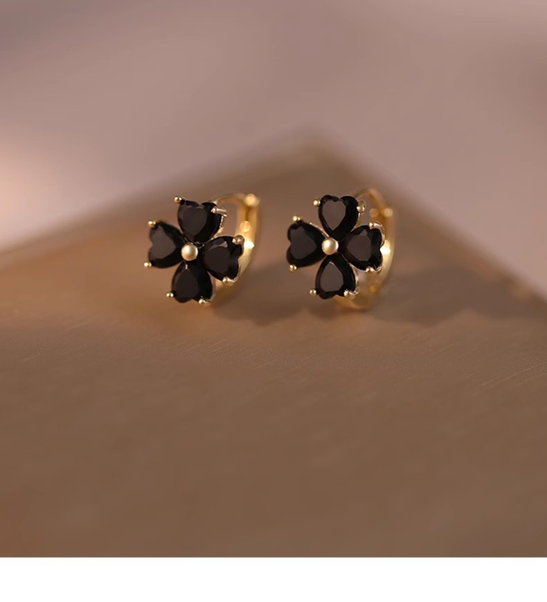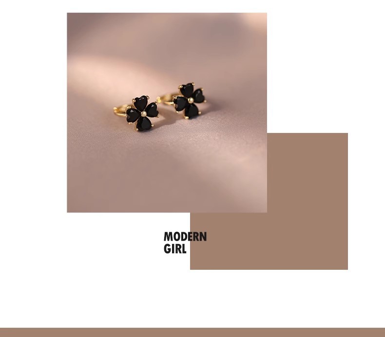 South Korea Niche Elegant Black Four-leaf Flower Ear Buckle Light Luxury High-end Sense Ins Cyber Celebrity Earrings Mori Earrings