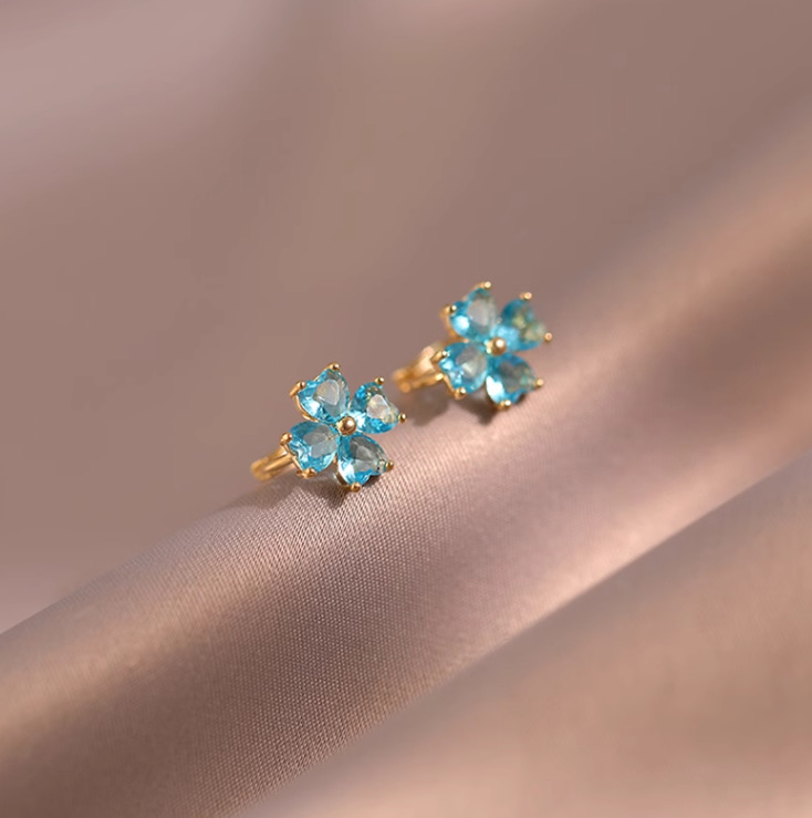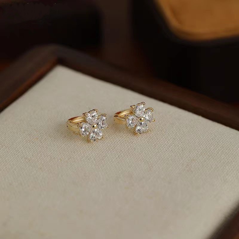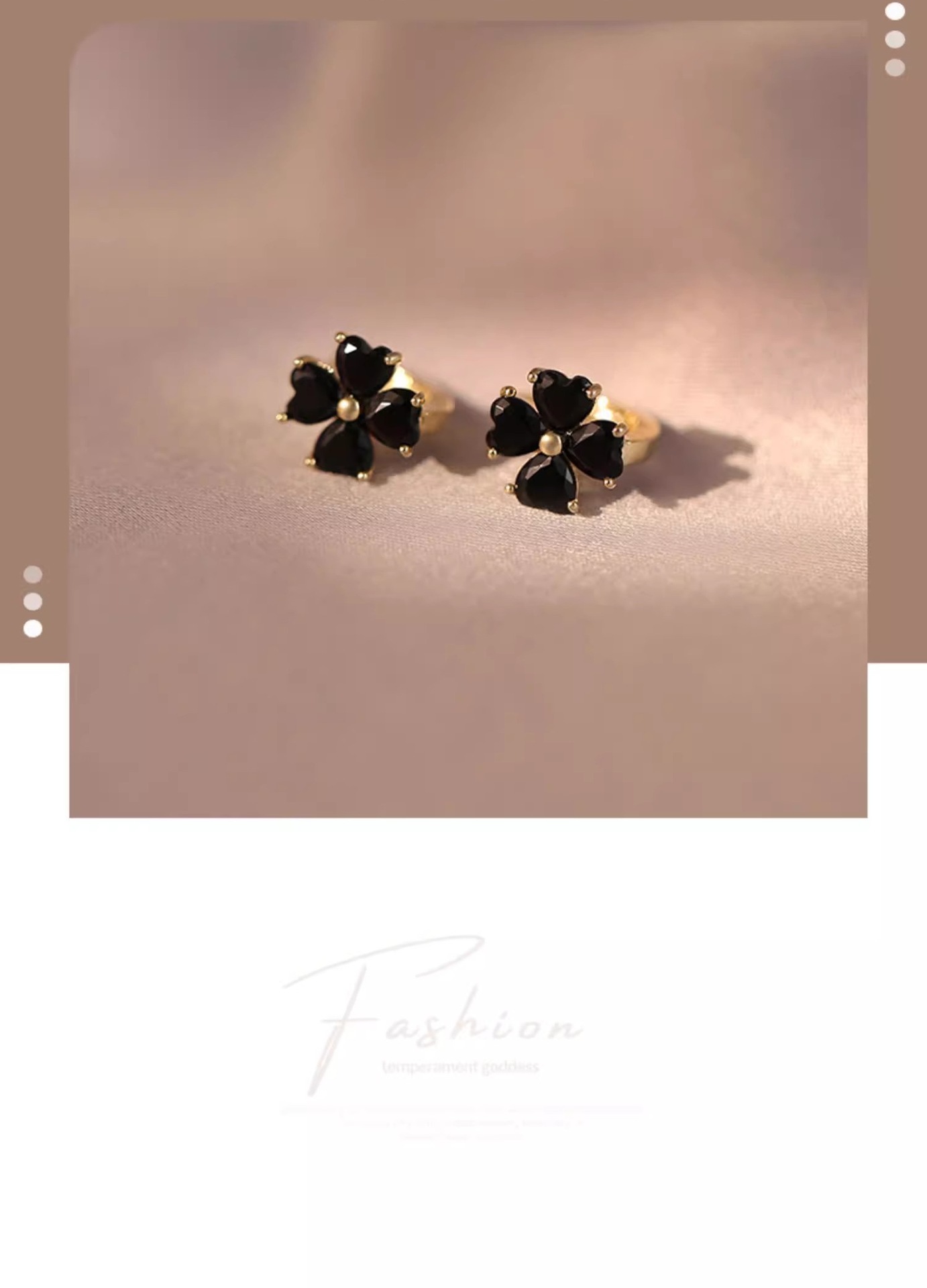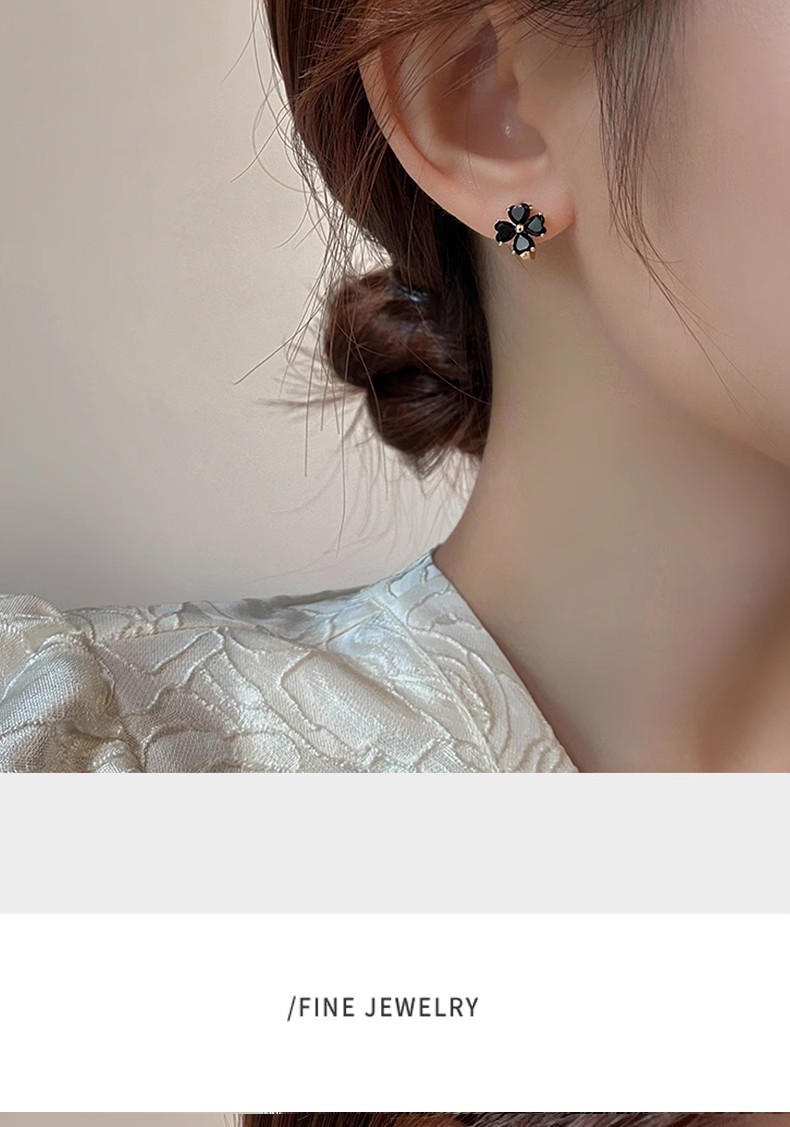 South Korea Niche Elegant Black Four-leaf Flower Ear Buckle Light Luxury High-end Sense Ins Cyber Celebrity Earrings Mori Earrings