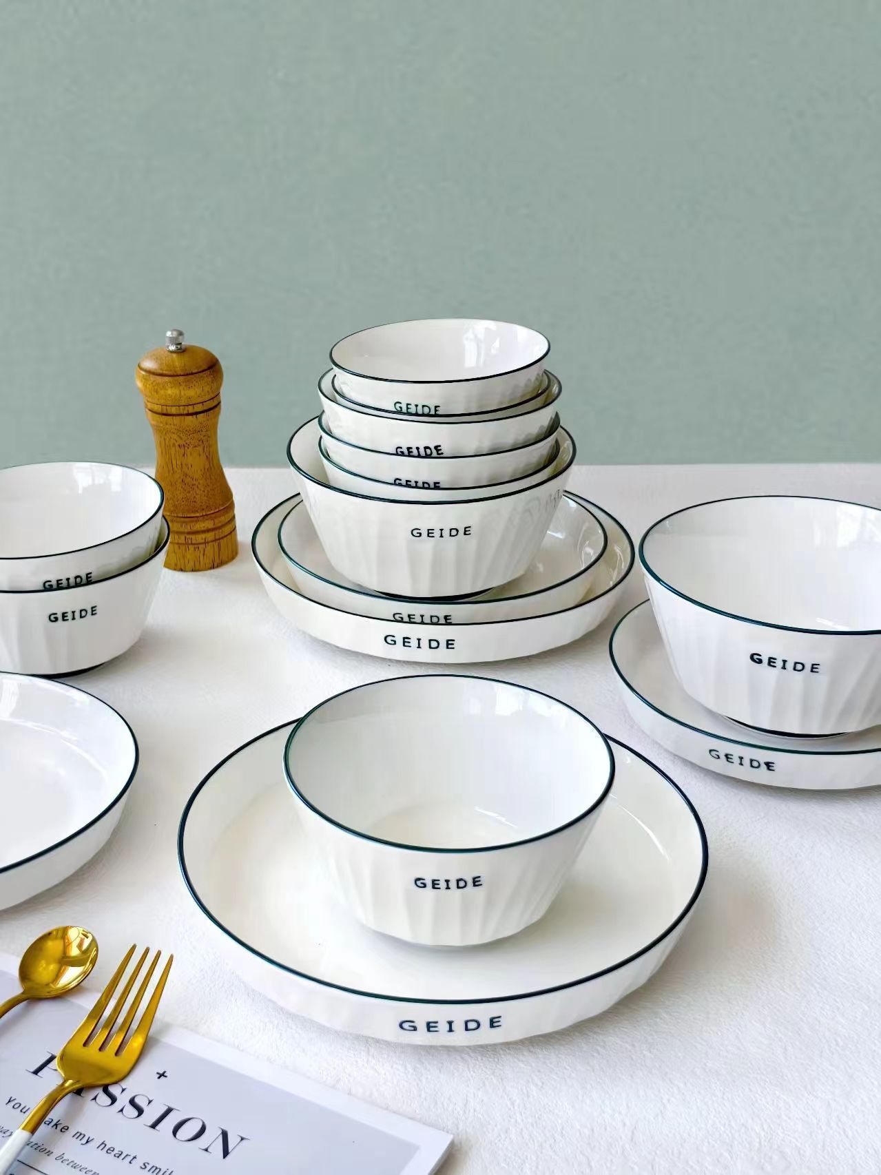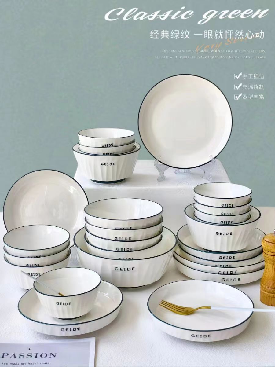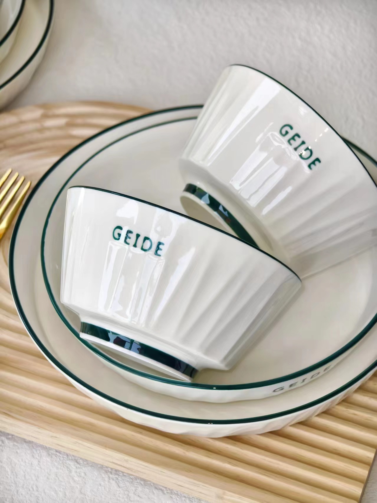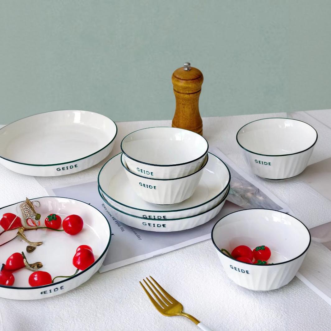 Color: 7-inch plate 4 4.5-inch bowl 6 [ink green glaze]]
