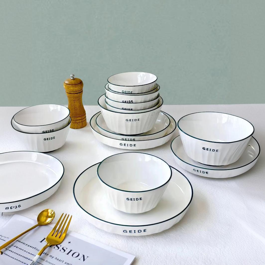 Ceramic Tableware Bowl and Dish suit Nordic Household Dining Bowl and Dish Combination Tableware suit Bowl and Chopsticks Gift Diamond Pattern