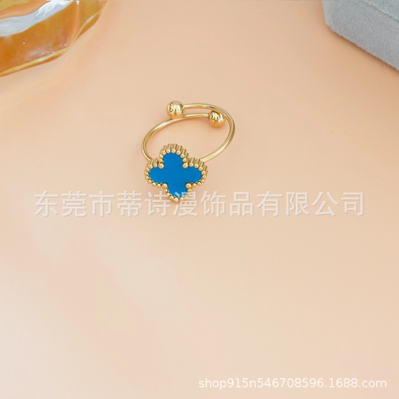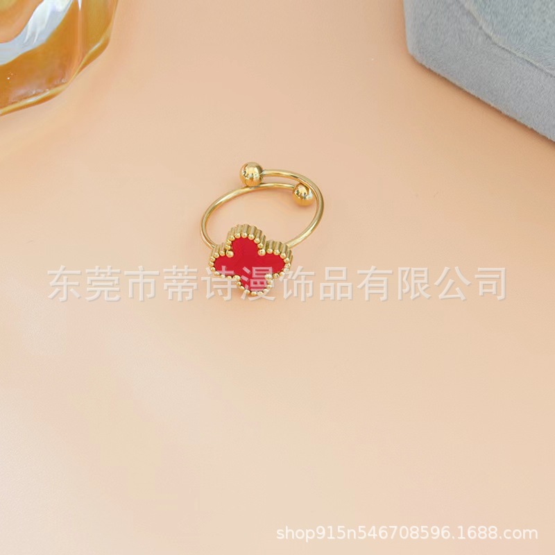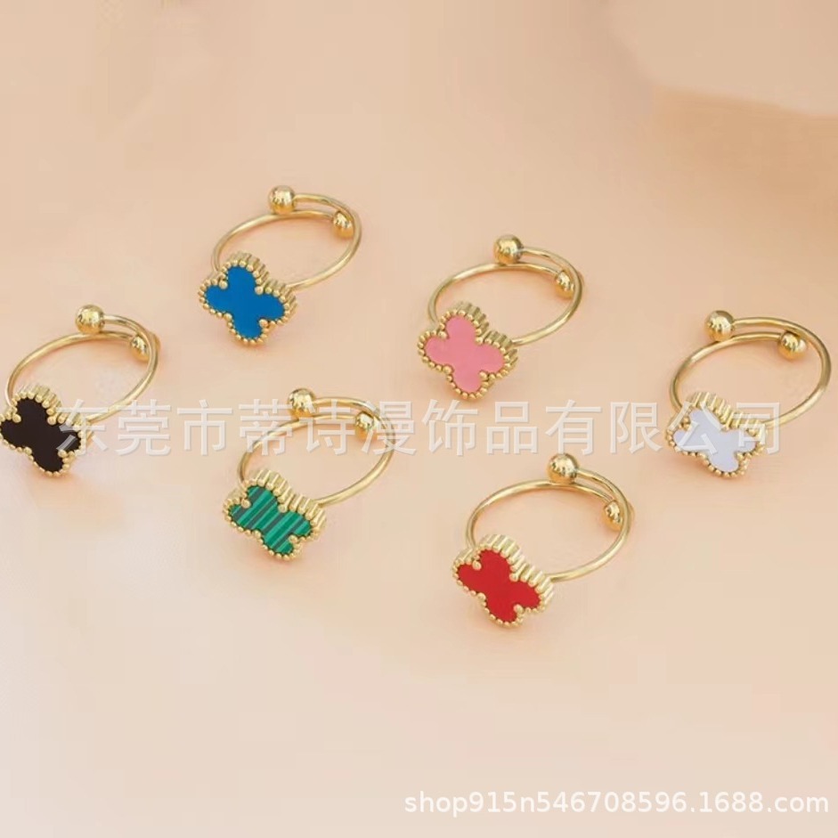 Cross-border hot-selling titanium steel four-leaf clover live ring simple Joker ins stainless steel ring female factory direct sales