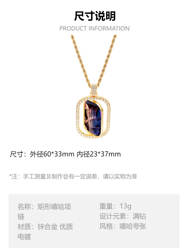 Diamond-encrusted rotating hip-hop base rectangular 23*37mm rhinestone pendant empty base double-sided time gem necklace