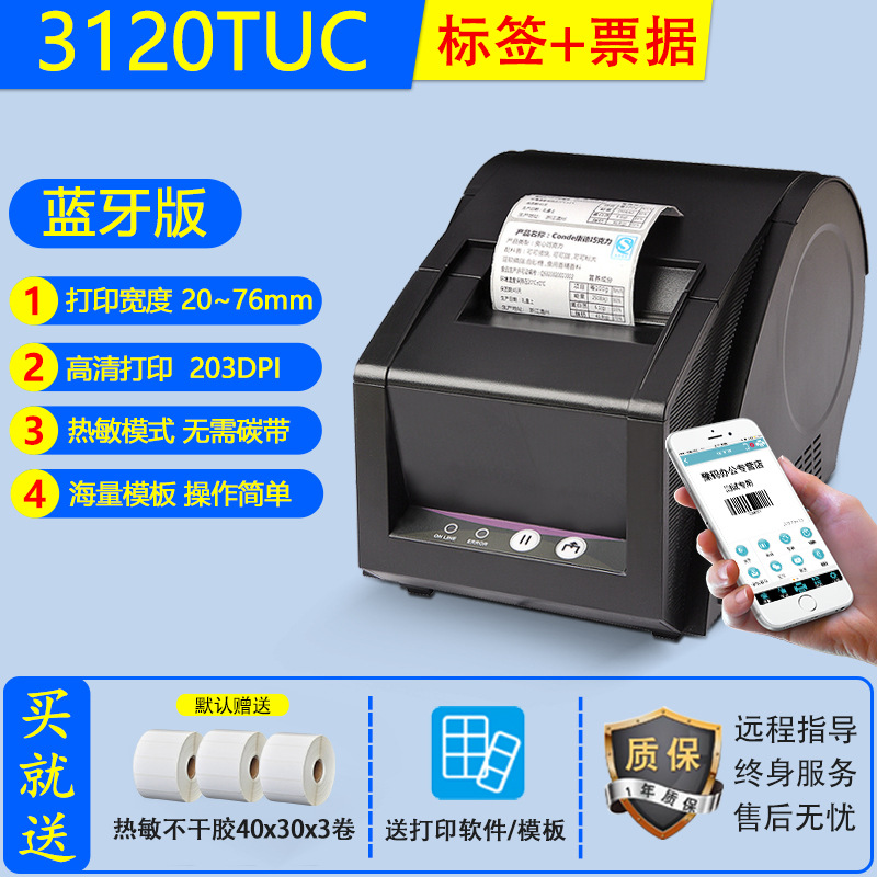 Model: GP-3120TUC bluetooth version (printing width 20~76mm) printing (label + receipt)