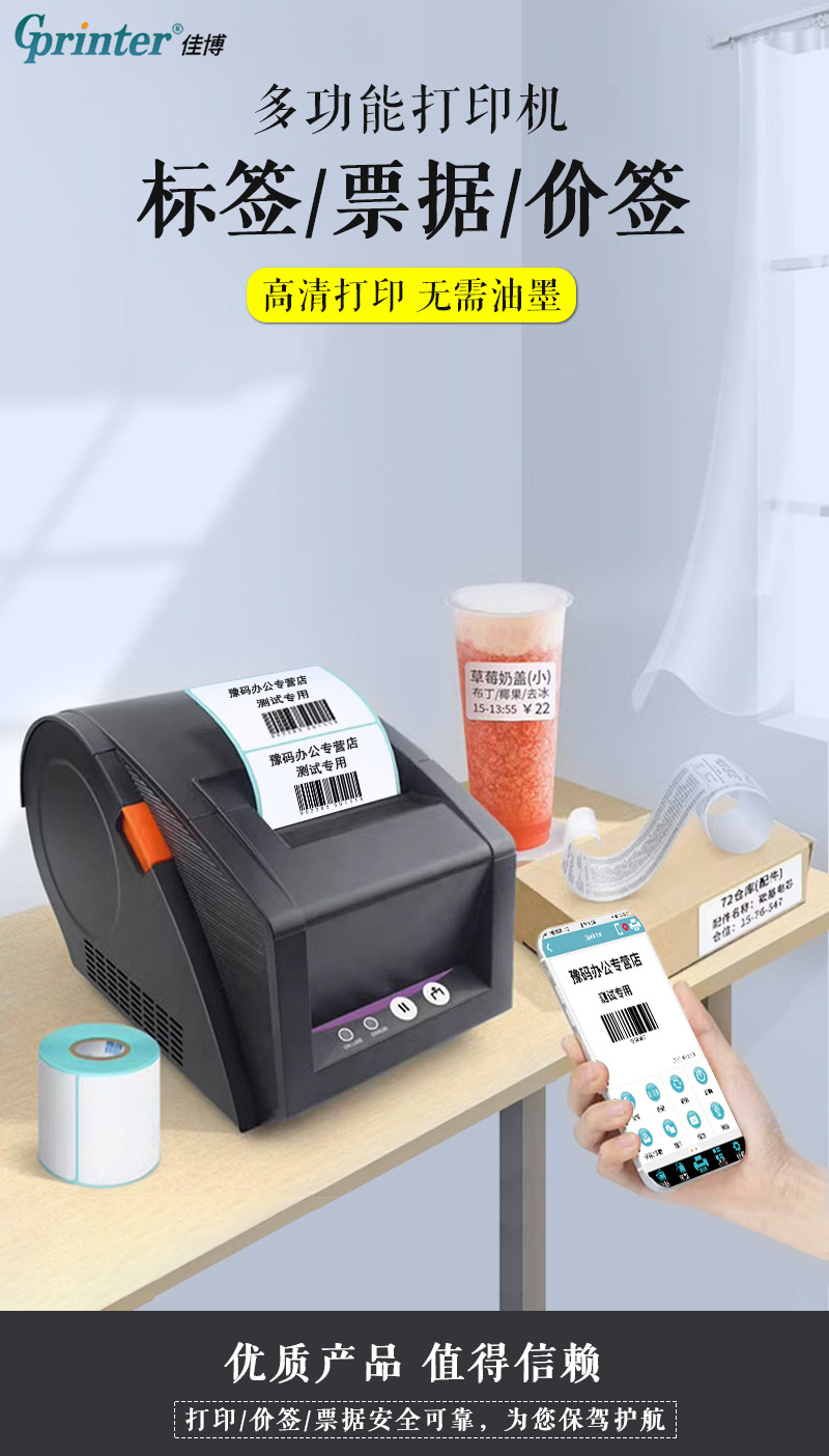 Model: GP-2120TUA bluetooth version (printing width 20~58mm) printing (label + receipt)