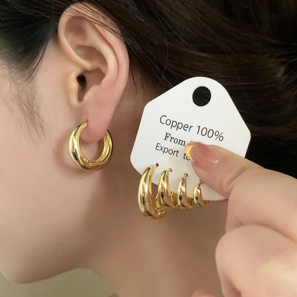 Simple Gold Pigment Ring Earrings 2024 New Explosive Ear Ring Niche Design Advanced Sense Cold Wind Ear Buckle Ear Jewelry