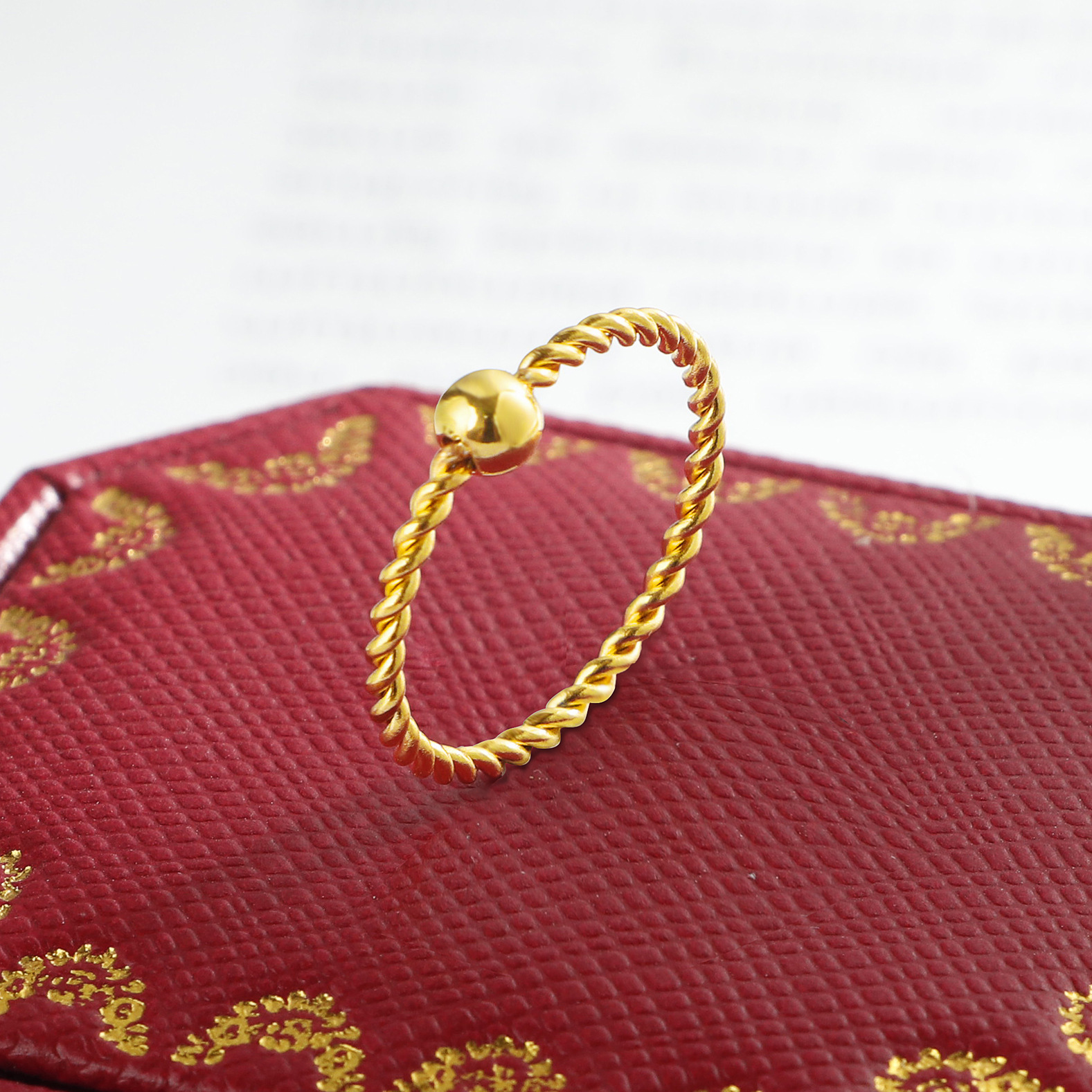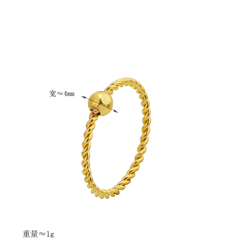 Titanium Steel Golden Twist Round Bead Gold Bean Ring Women's Simple Commuter All-match Color-free Light Luxury Niche Index Finger Ring