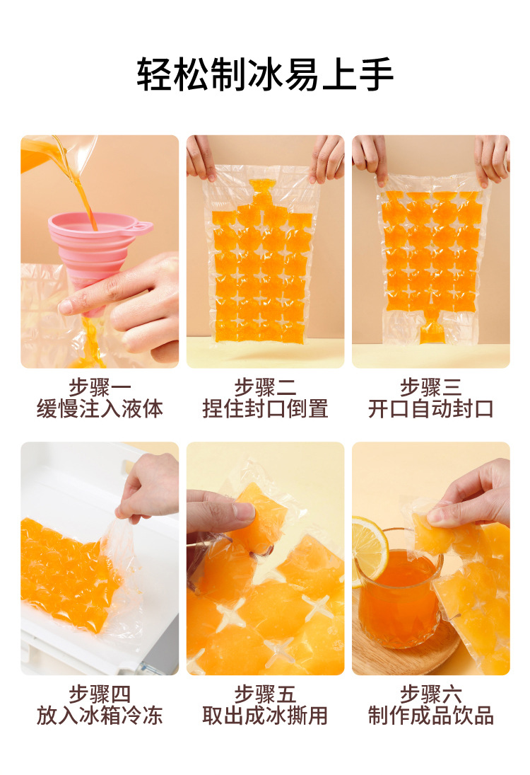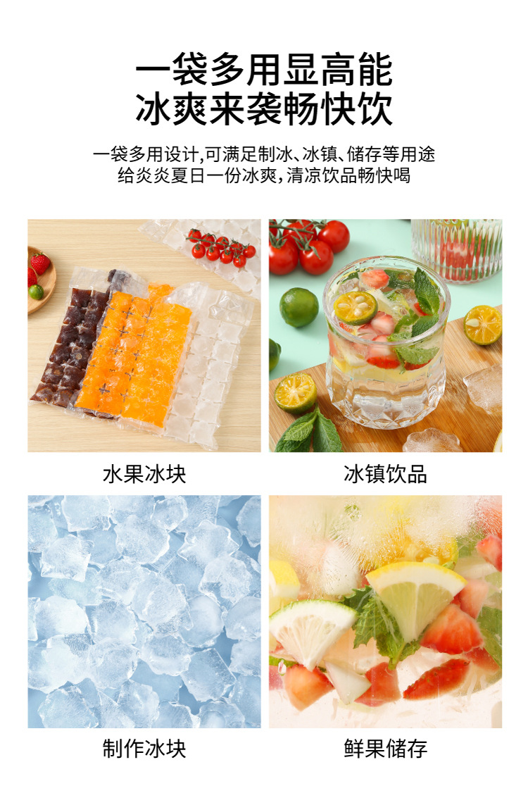 Household Ice Tray Bag Self-Sealing Ice Bag Disposable Passion Fruit Frozen Ice Cube Ice Making Mold Ice Box Ice Cube Wholesale