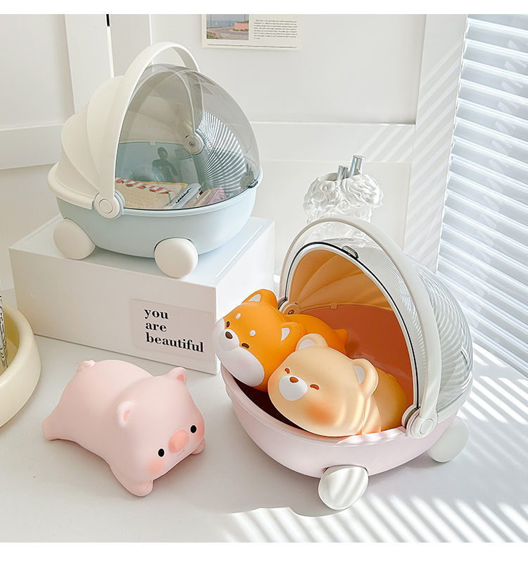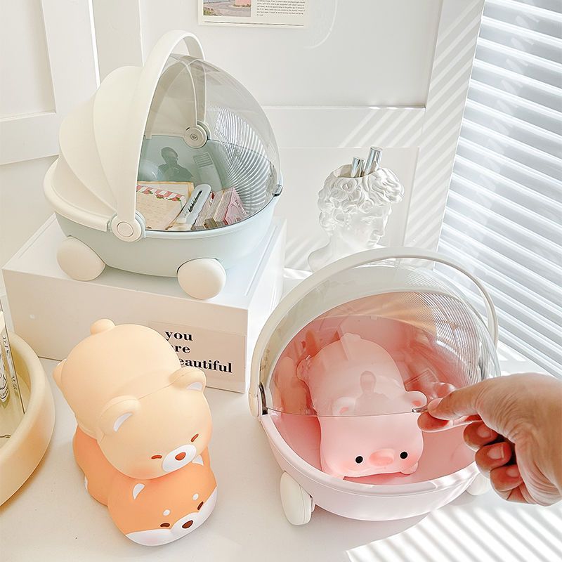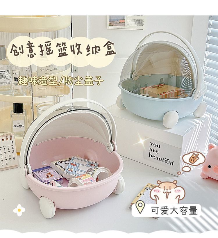 Creative Portable Cute Cradle Storage Box Storage Dustproof Flip Toy Building Blocks Desktop Snacks Sundries Storage Box