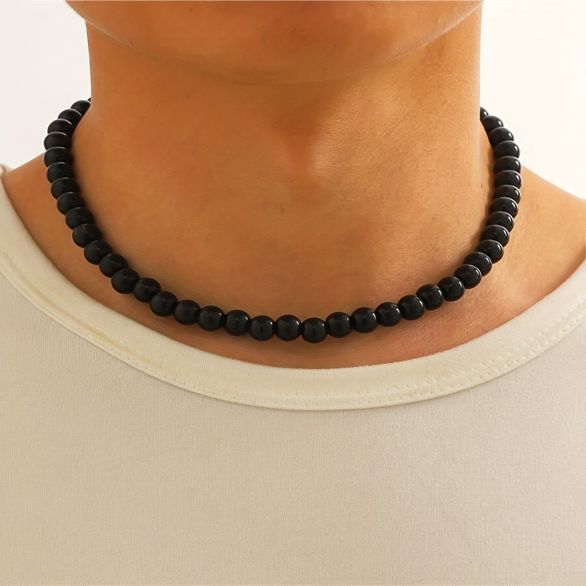 Retro simple fashion single layer men's imitation pearl collar round beaded clavicle chain imitation pearl necklace wholesale