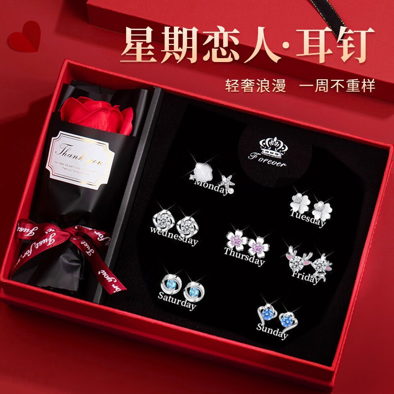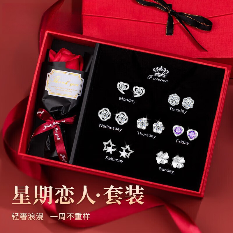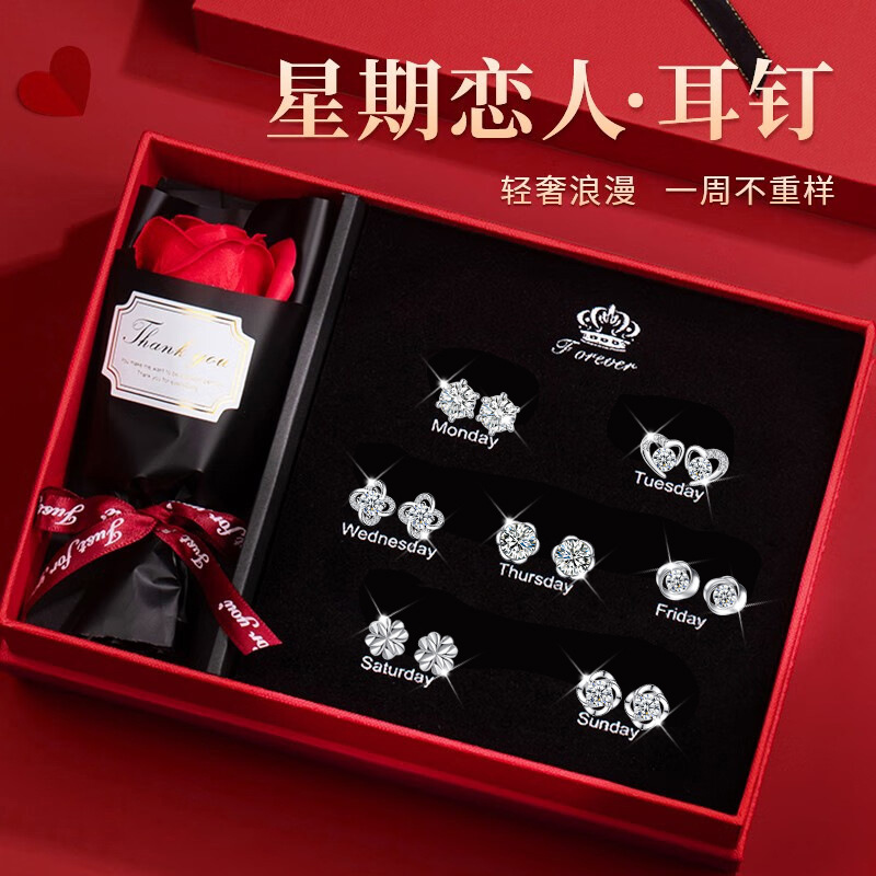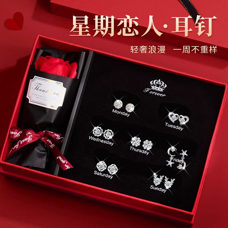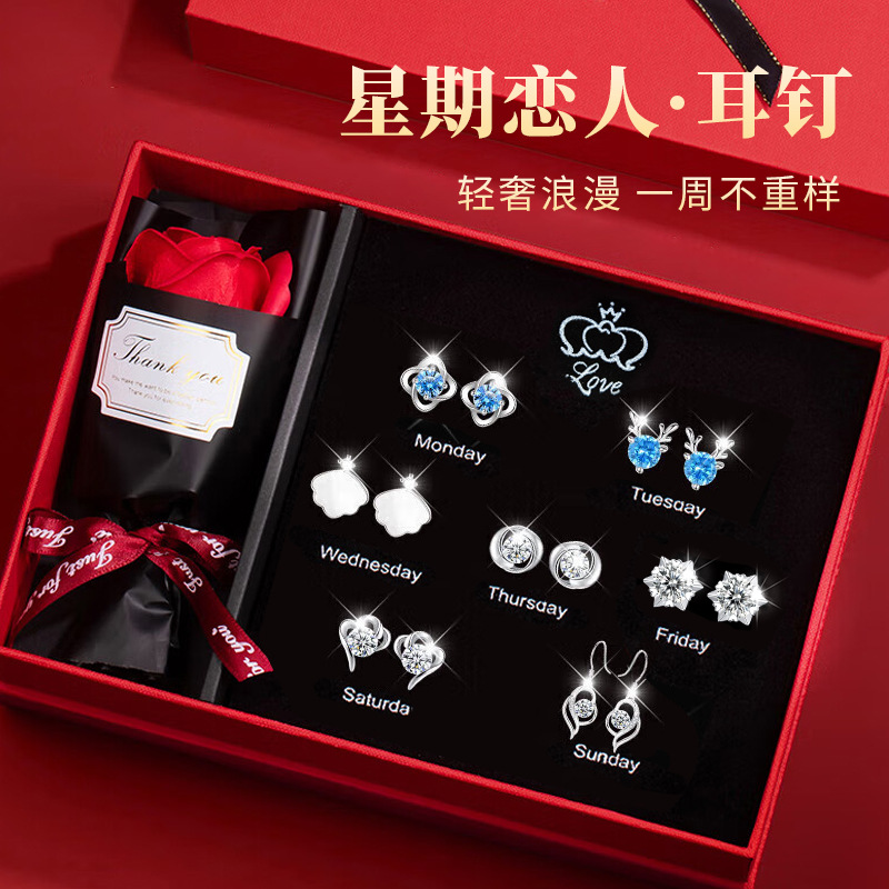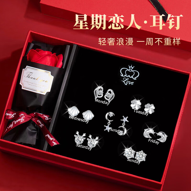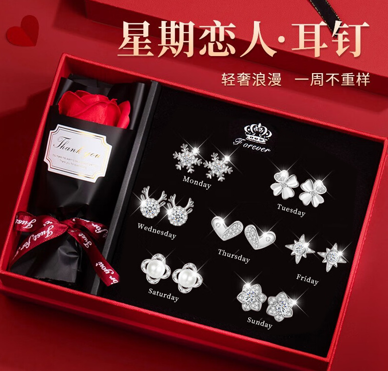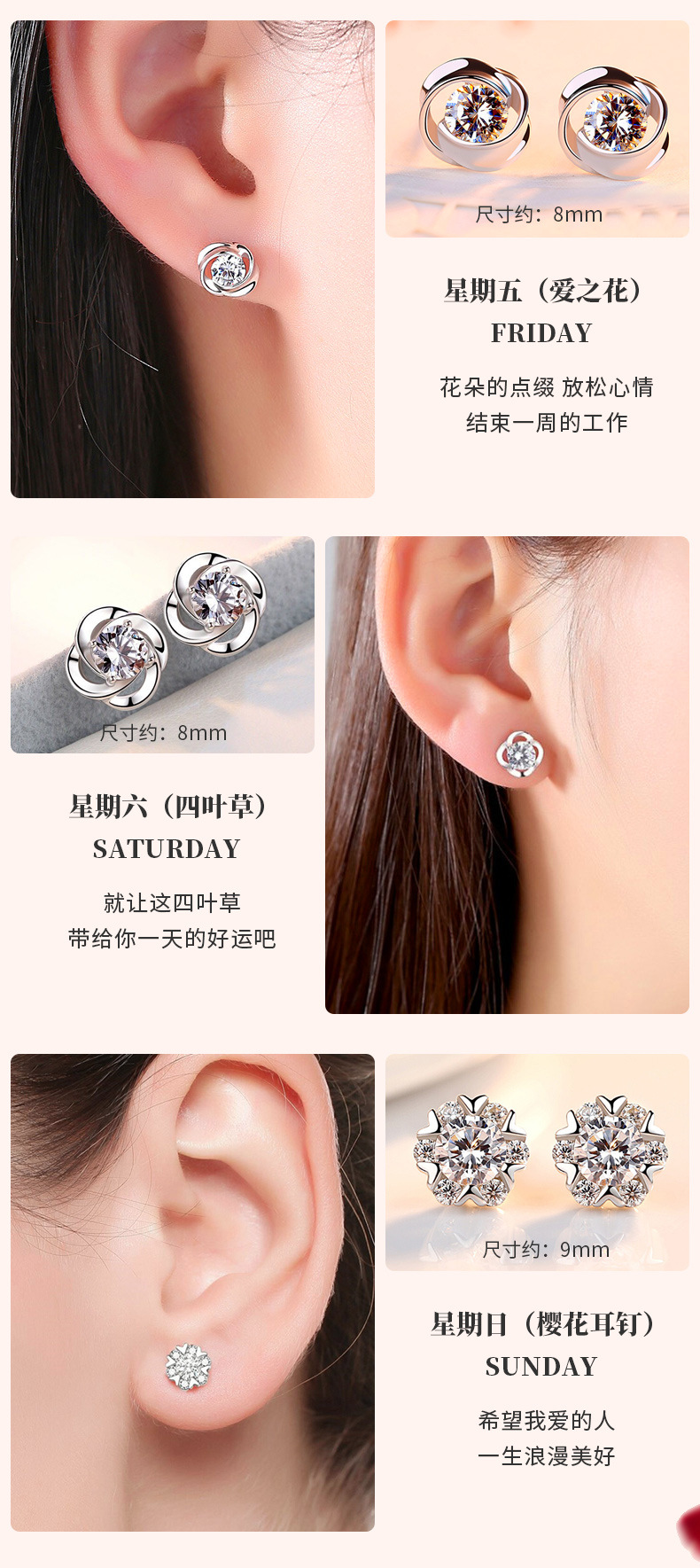 Color: Tw771 rose stud earring set (includes silver needle certificate)