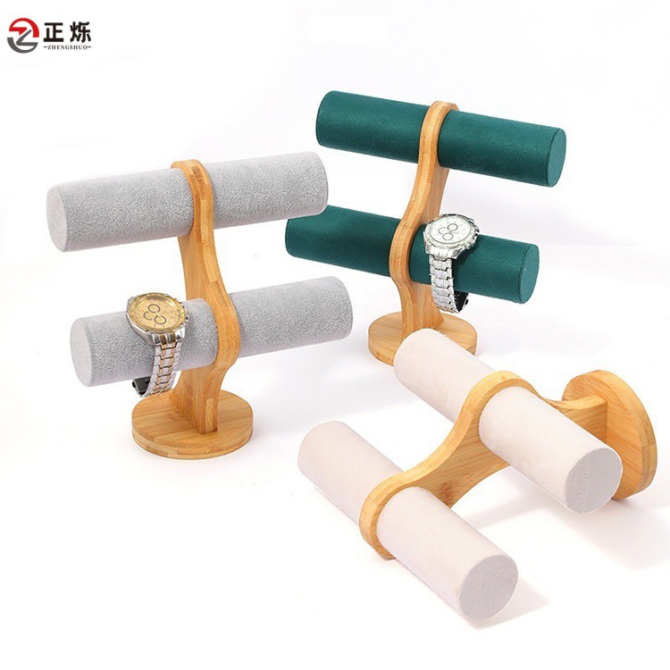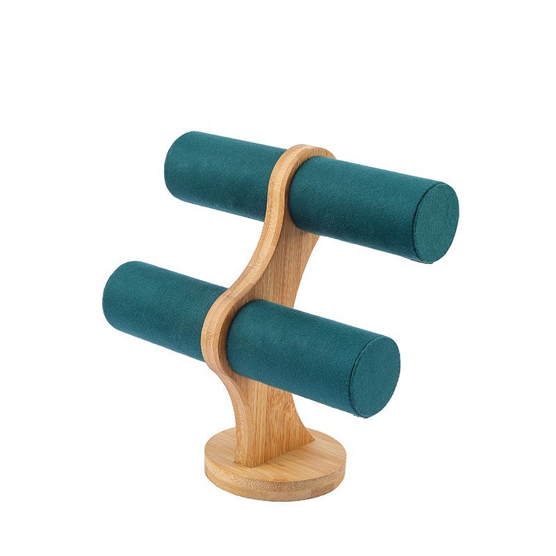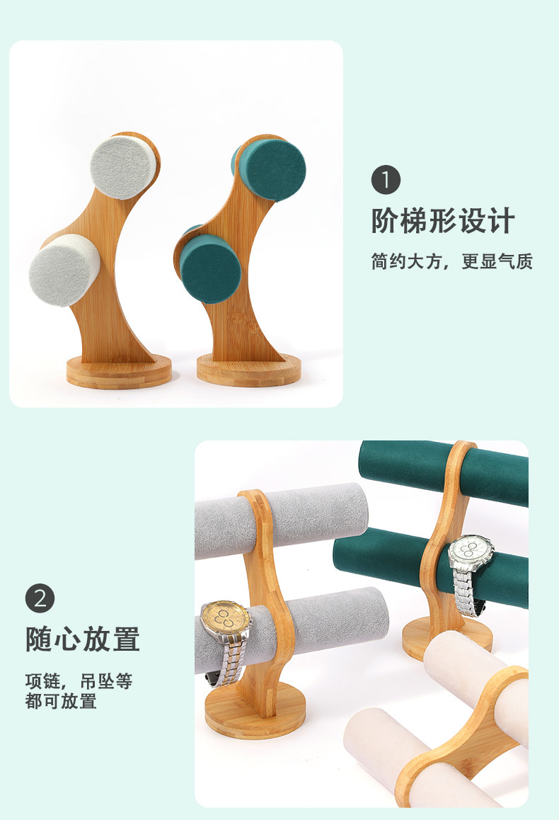 Bamboo wood curved double bracelet display bracelet bracelet string hair rope hair ring storage rack watch display props wholesale